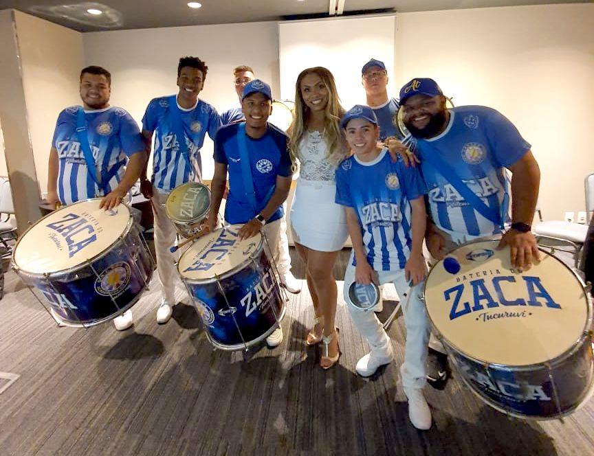 E como não poderia ser diferente, logo em seguida todos os convidados caíram no samba com a presença da bateria da escola de samba Acadêmicos do Tucuruvi, do Carnaval Paulistano, onde atualmente Priscila é Musa da agremiação.