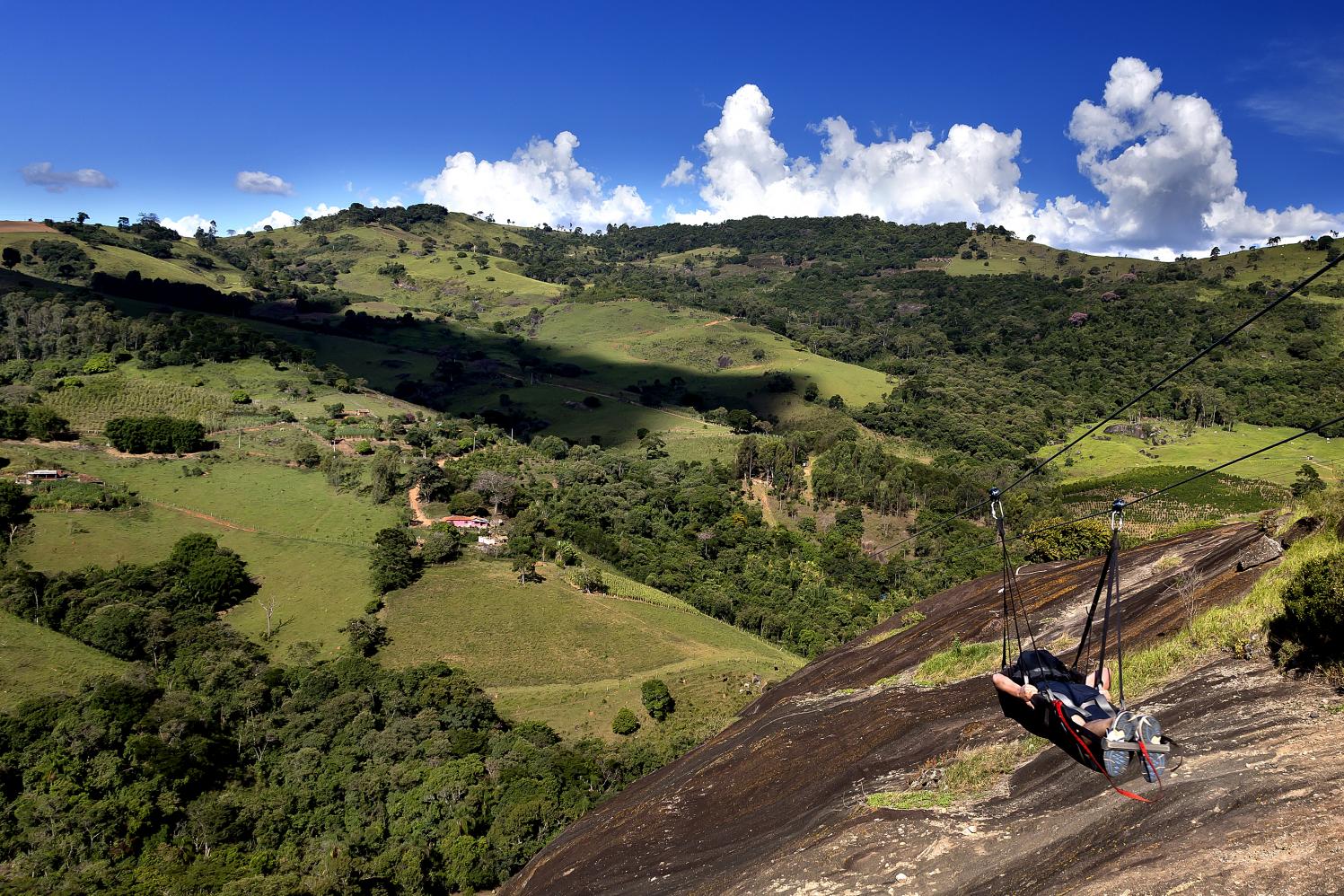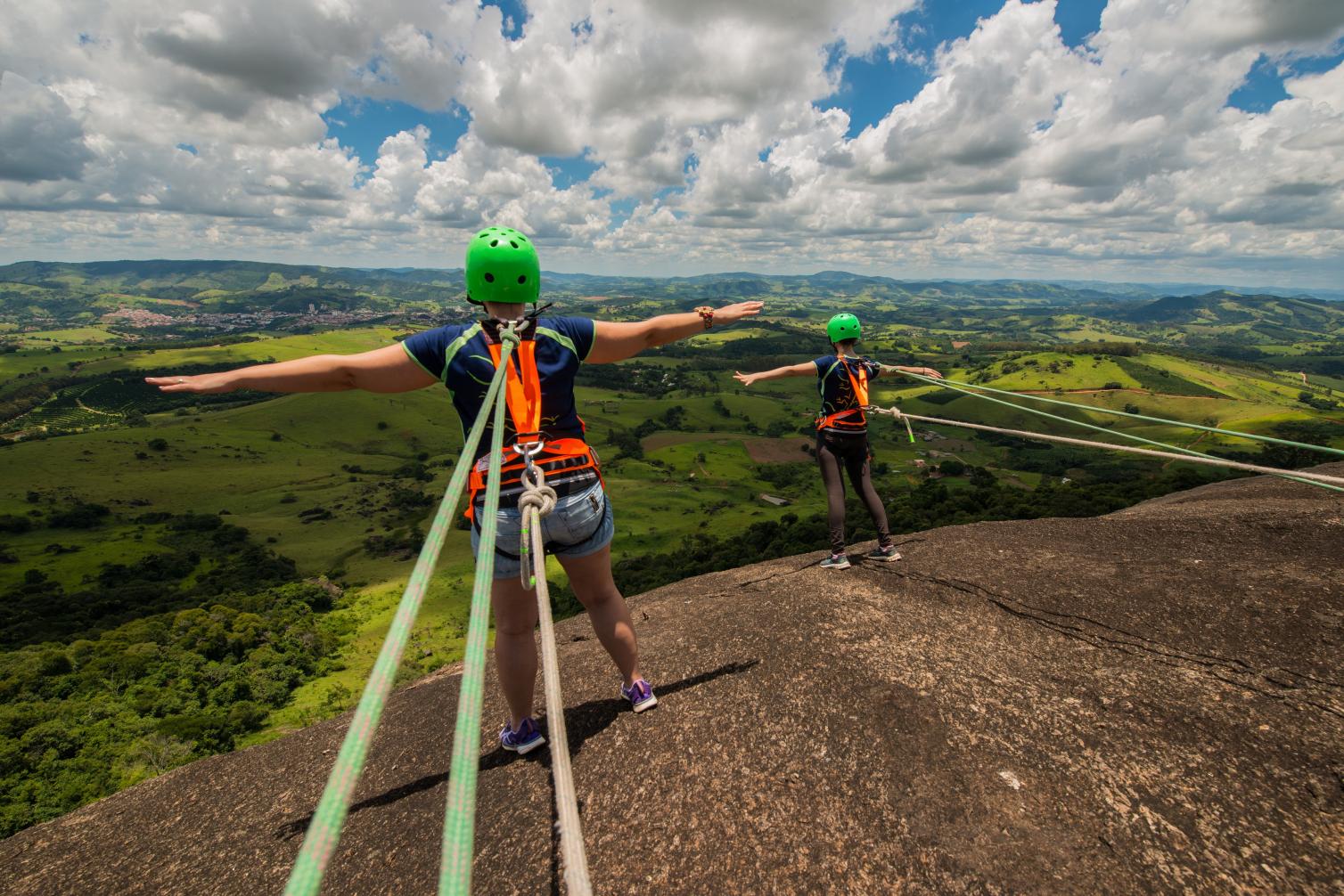 Quem nunca teve aquela vontade de, estando em uma pedra, dar vários passinhos cuidadosos em direção à ponta dela para observar melhor? Agora pensa na sensação de andar de frente na rocha (ao contrário do rapel), a 100 metros de altura e chegar até a beira da pedra e admirar tudo de lá...