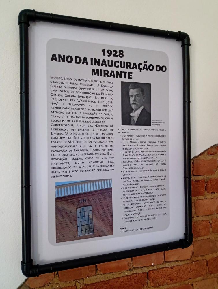 Segundo o secretário de Cultura, Turismo e Eventos, Paulo Martimiano, essa ação só tem a acrescentar, pois, além de contribuir com o turismo da cidade, também reflete a manutenção da história e do patrimônio público de Cordeirópolis. “Em Cascalho, através da Associação Trevisani Nel Mondo, temos um resgate histórico muito grande, e é uma honra para nós termos toda essa riqueza cultural, que pode ser vista na Praça do bairro, na igreja, no cemitério e, agora, no mirante”, afirmou o secretário.
