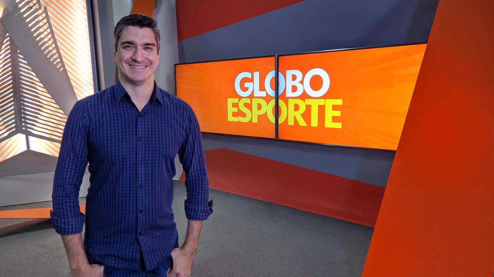 Felipe Andreoli, apresentador do Globo Esporte, participa da transição do novo Globo Esporte, que será apresentado pelos jornalistas Bruna Ficagna, em Campinas (SP), e Geraldo Neto, em Ribeirão Preto - Crédito: Renato Góes/EPTV