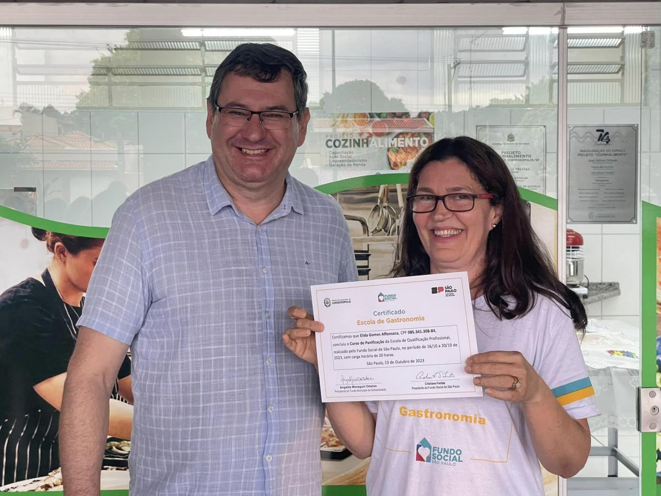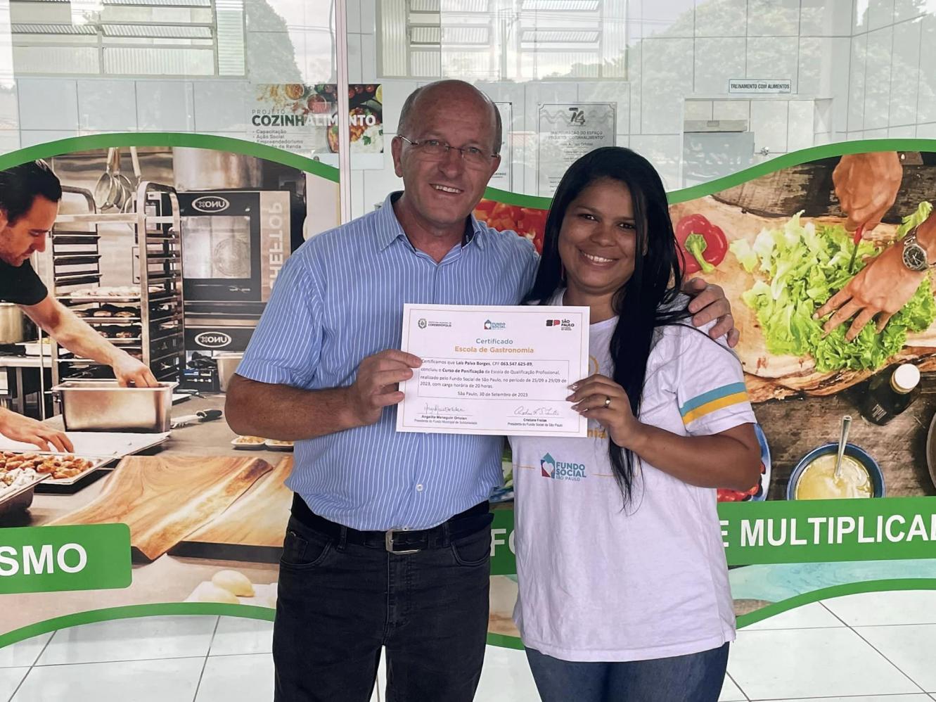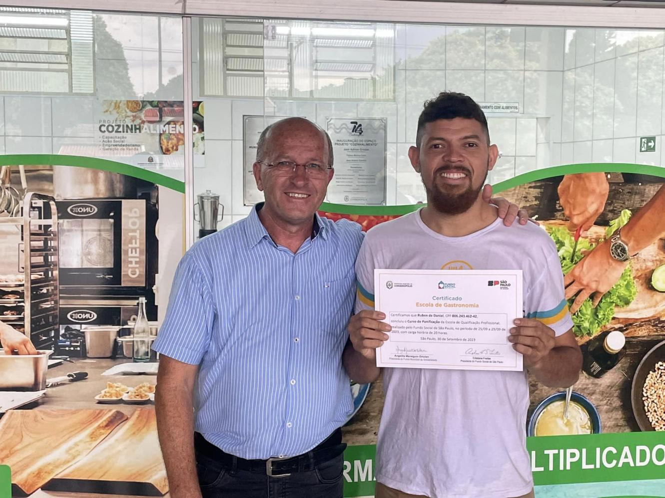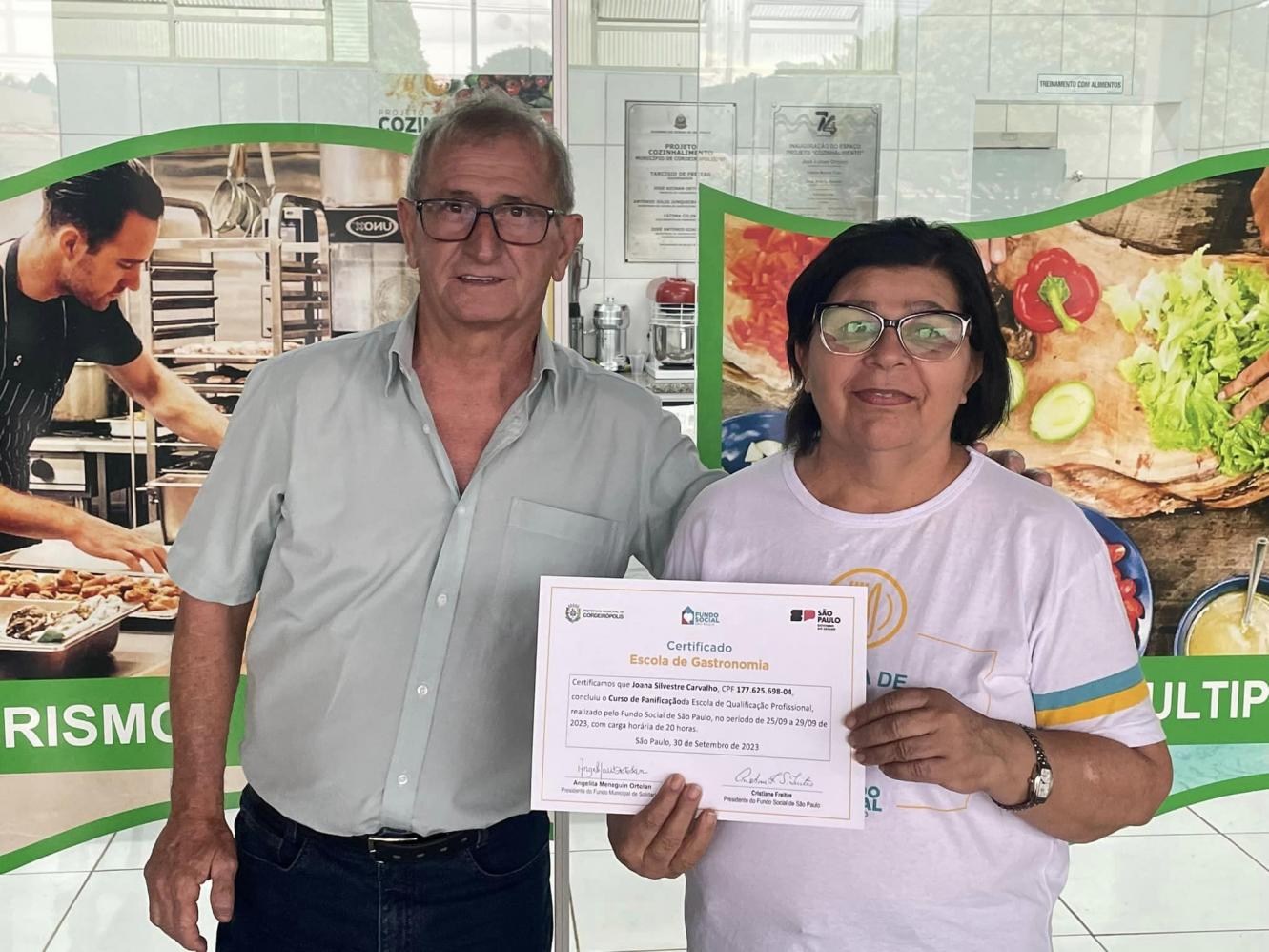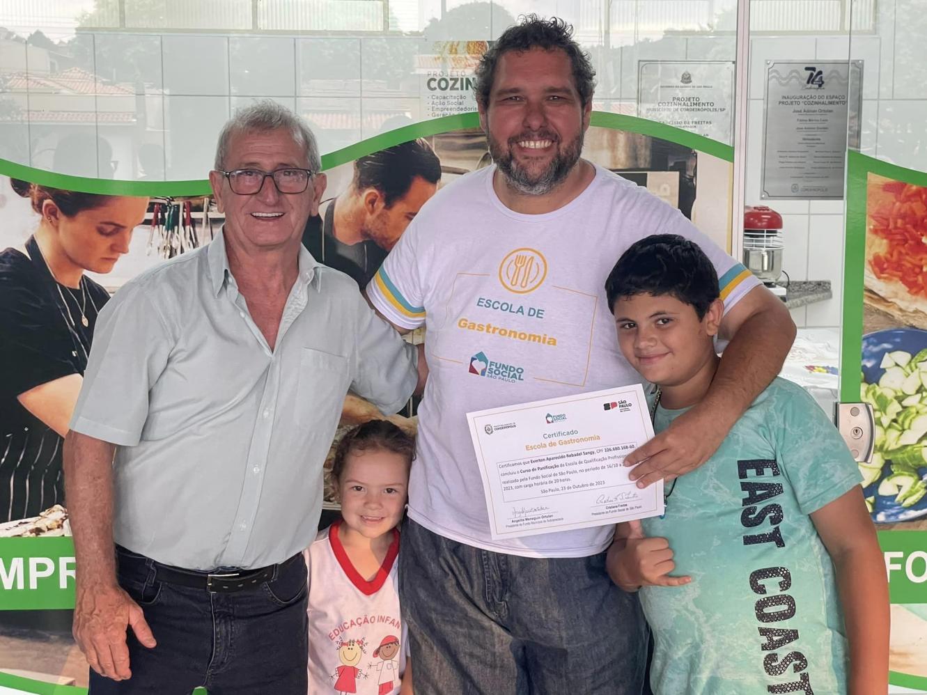 Na tarde do último dia 24, ocorreu a entrega dos certificados do curso de panificação, que contou com a presença das seguintes autoridades, o Prefeito Adinan Ortolan, primeira-dama e Secretária de Educação e presidente do Fundo Social Angelita Ortolan, a vice-prefeita Fátima Celin e o Secretário de Desenvolvimento Econômico e Sustentável José Giardini.