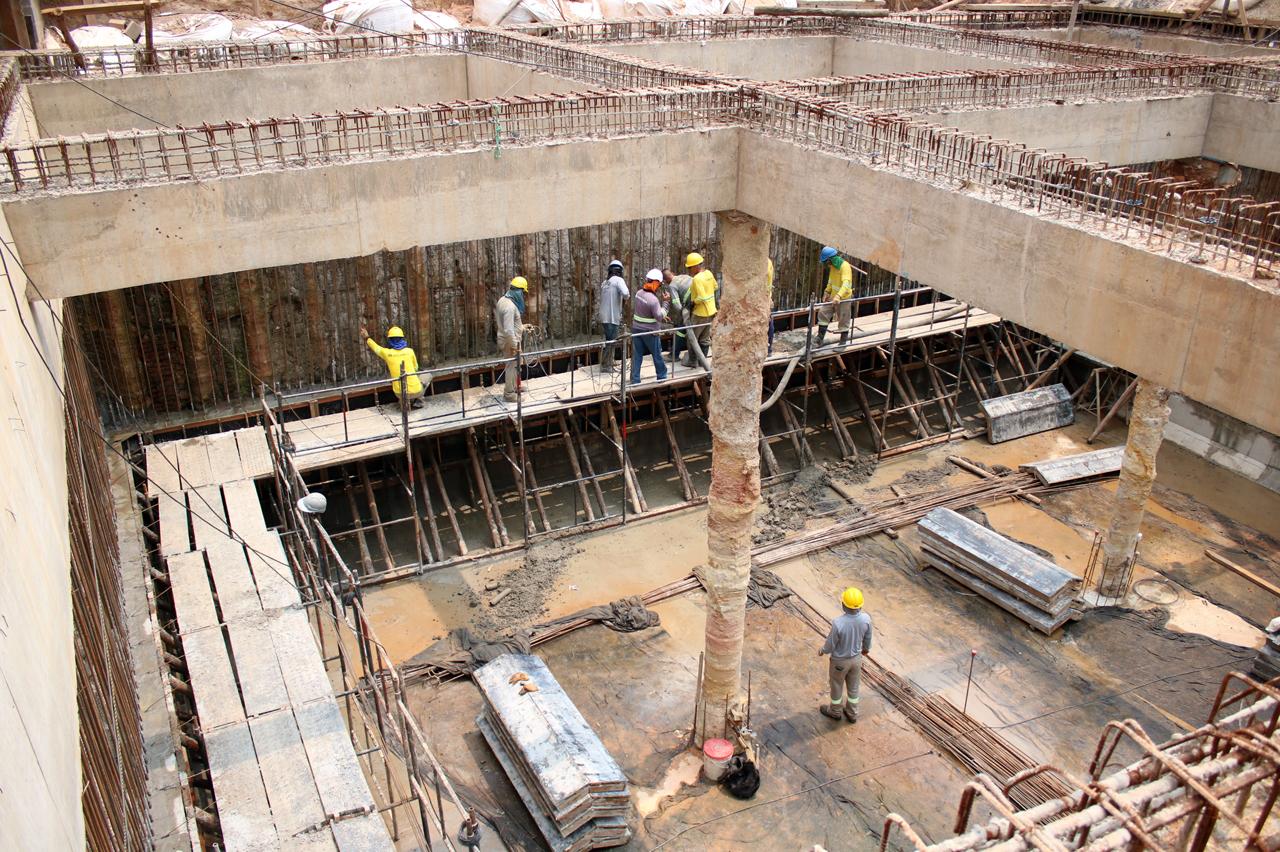 Nessa etapa, as equipes trabalham na concretagem das paredes do reservatório. Paralelamente, continua a armação das lajes de fundo do piscinão e a armação e montagem de formas das paredes de concreto do reservatório menor. As informações são da Secretaria de Obras e Serviços Públicos.