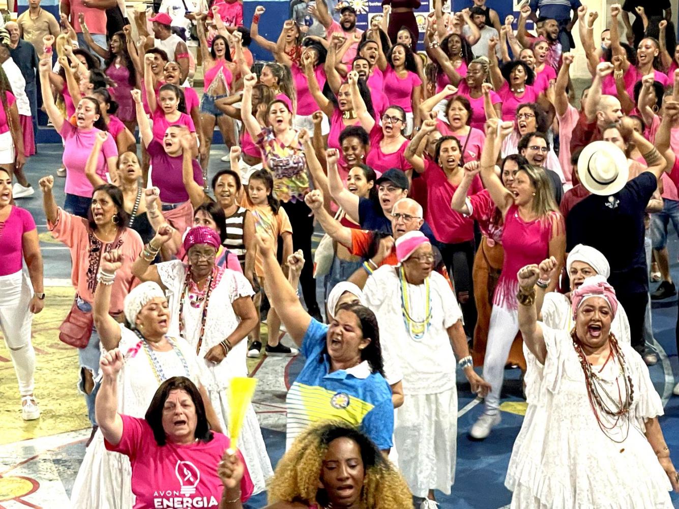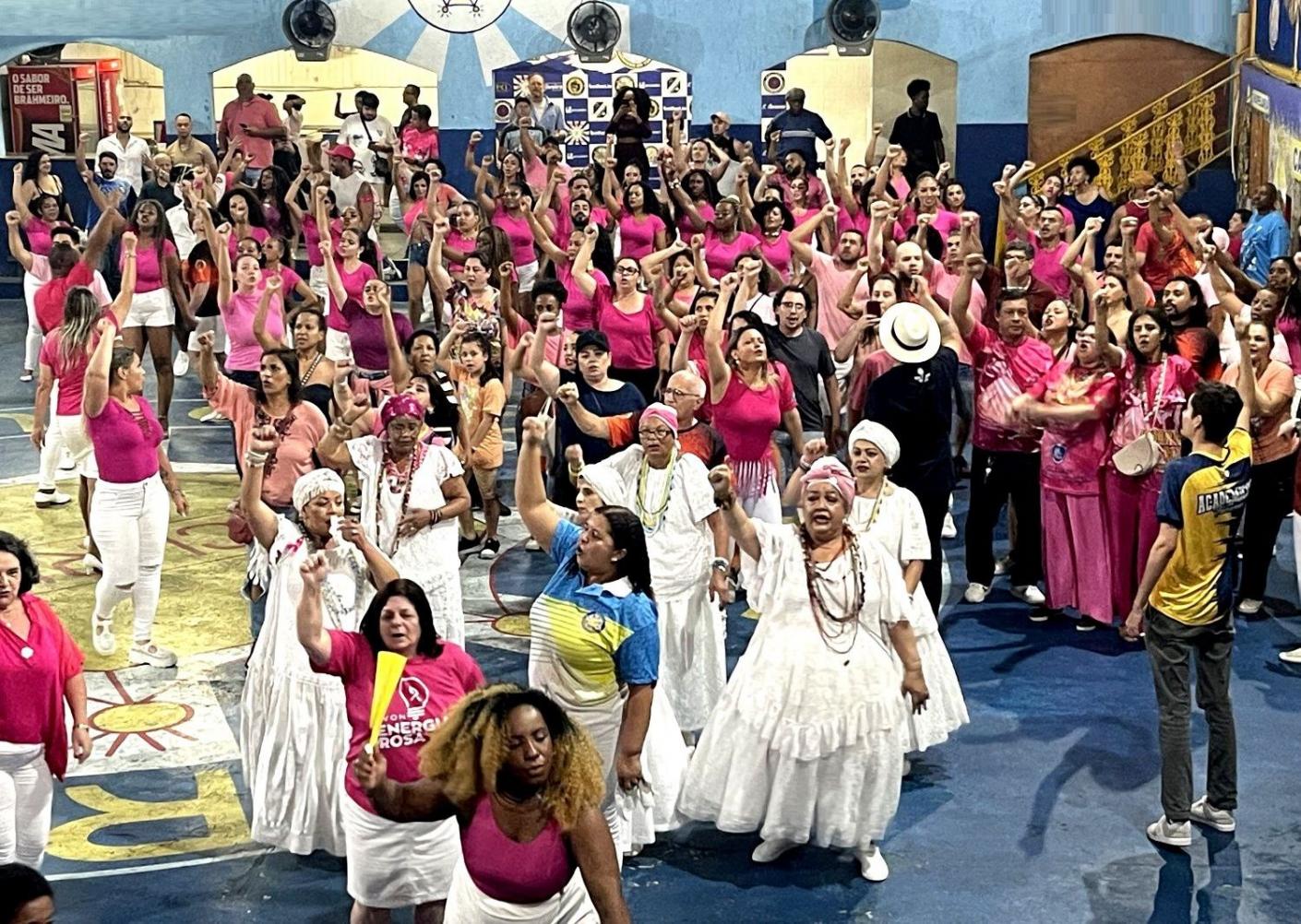 Durante o ensaio que teve o comando do intérprete oficial Hudson Luiz cantando e agitando a galera, o destaque da noite ficou por conta dos integrantes que abraçaram a causa e fizeram questão de vestirem seus looks na cor rosa e outros utilizaram o símbolo do lacinho rosa, entre eles os três casais de mestre sala e porta bandeira que bailaram graciosamente com os tons da cor rosa.