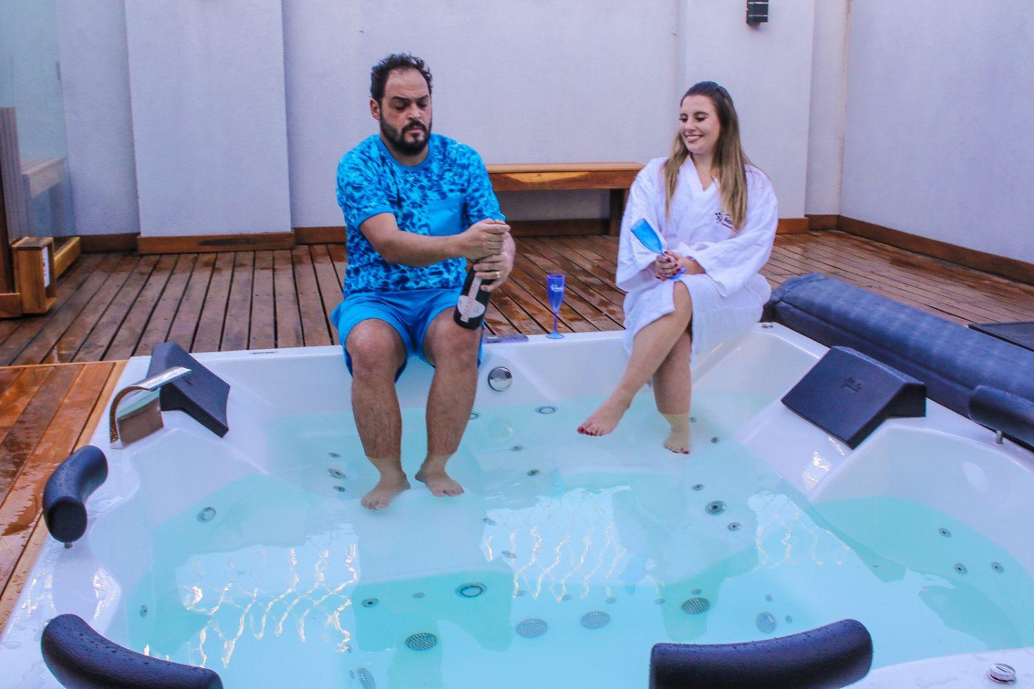 Sem dizer que o espaço ficou ainda mais luxuoso e bonito, pois a banheira é extremamente confortável, onde a família do humorista irá passar momentos inesquecíveis. E para comemorar esta nova fase, Matheus e Bianca posaram em clima de muita descontração, trocaram beijos apaixonados e brindaram com champagne à beira do SPA.