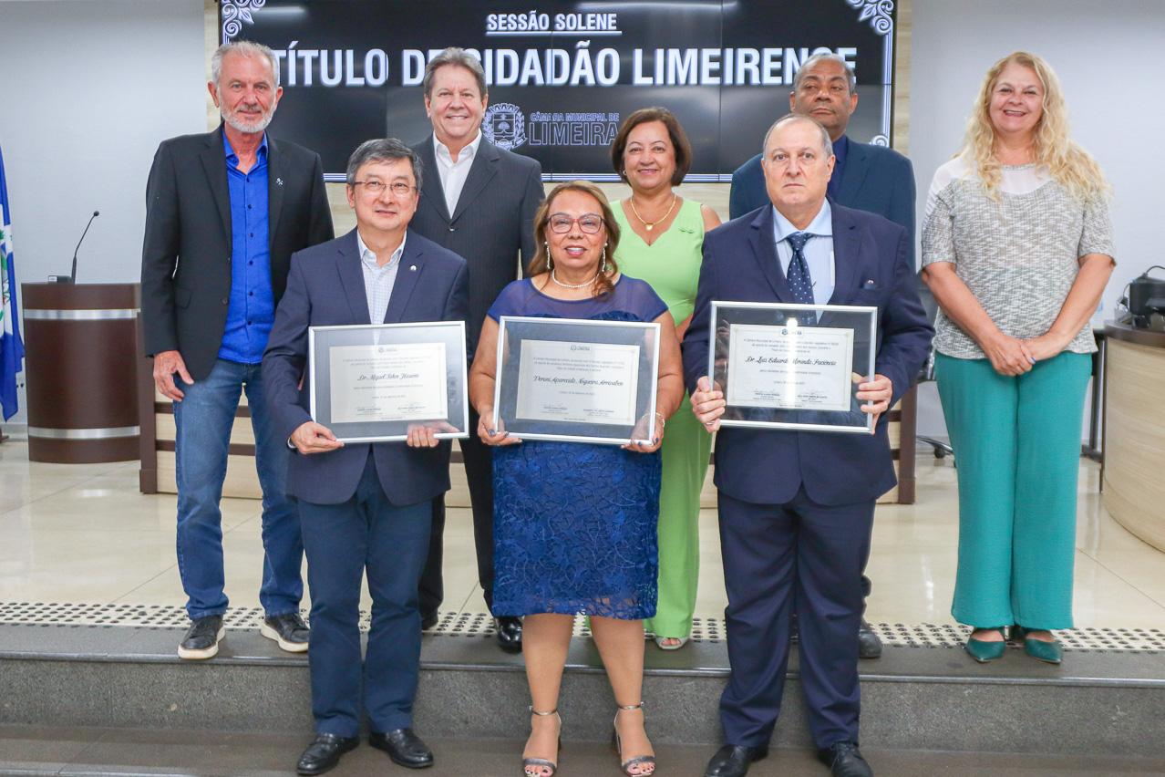 Os médicos Luís Eduardo Miranda Paciência e Miguel Takeo Hosomi, e a ativista social e membro da Paróquia de Santa Isabel de Portugal, Verani Aparecida Nogueira Arrivaben receberam na noite da última quarta-feira (8), o título de Cidadão Limeirense.
