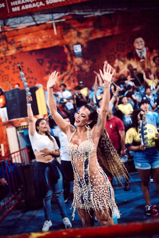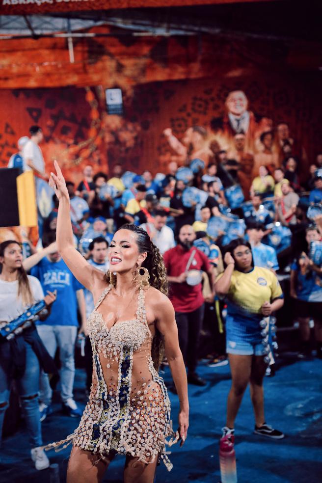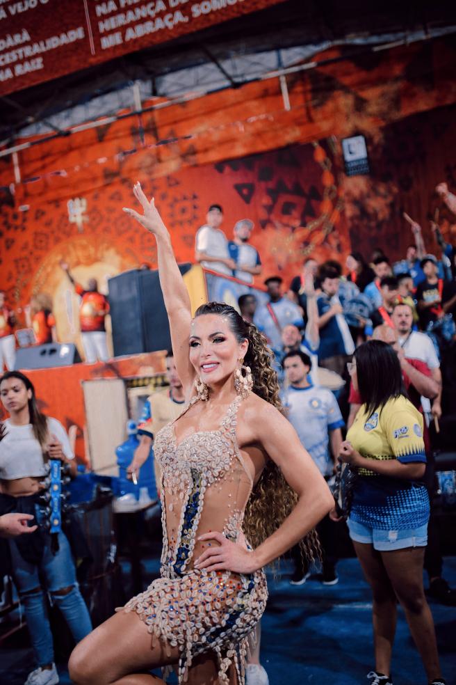 Nem o tempo ruim, nem a chuva que caía na capital paulista desanimaram a Rainha de Bateria da Tucuruvi de se juntar a comunidade para este evento com uma causa tão importante. Atenta a cada detalhe, a Carla Prata assistiu a linda apresentação especial dos integrantes da escola, além é claro, de cair no samba e cantar o hino que será levado para o Anhembi em 2024.
