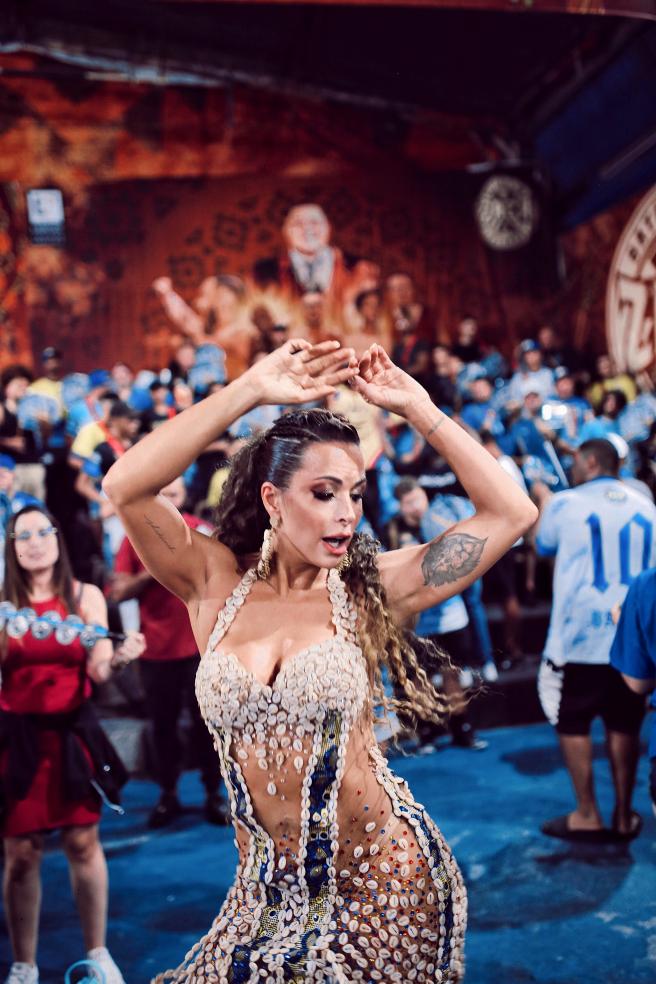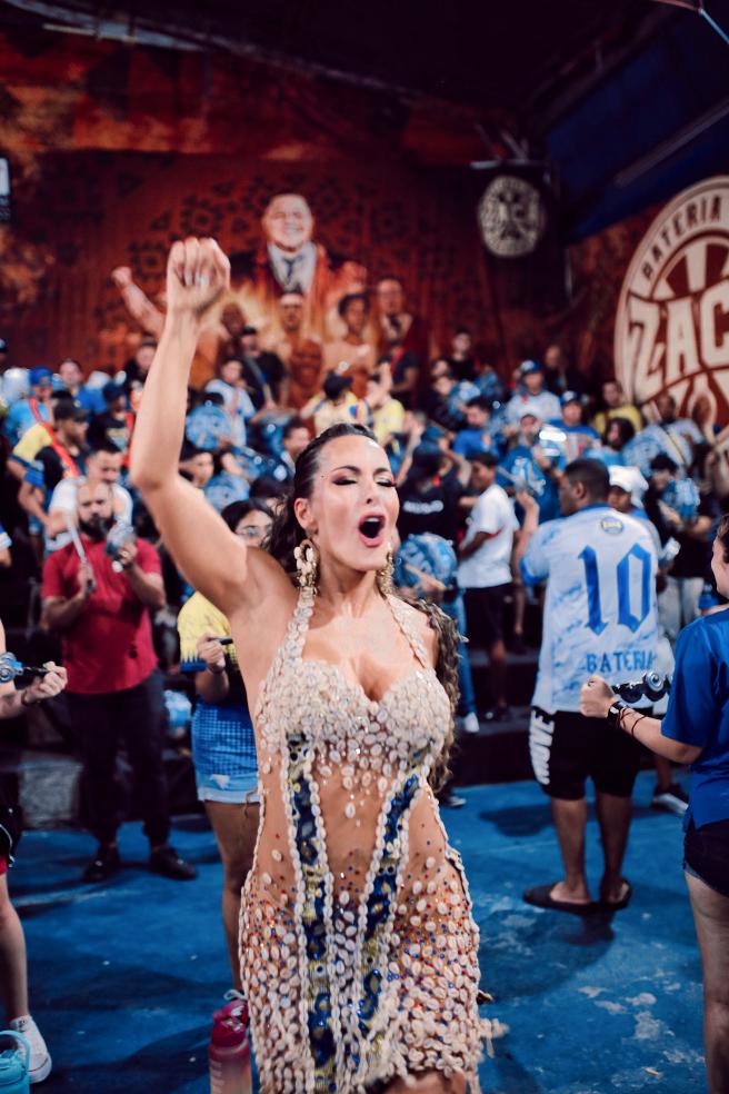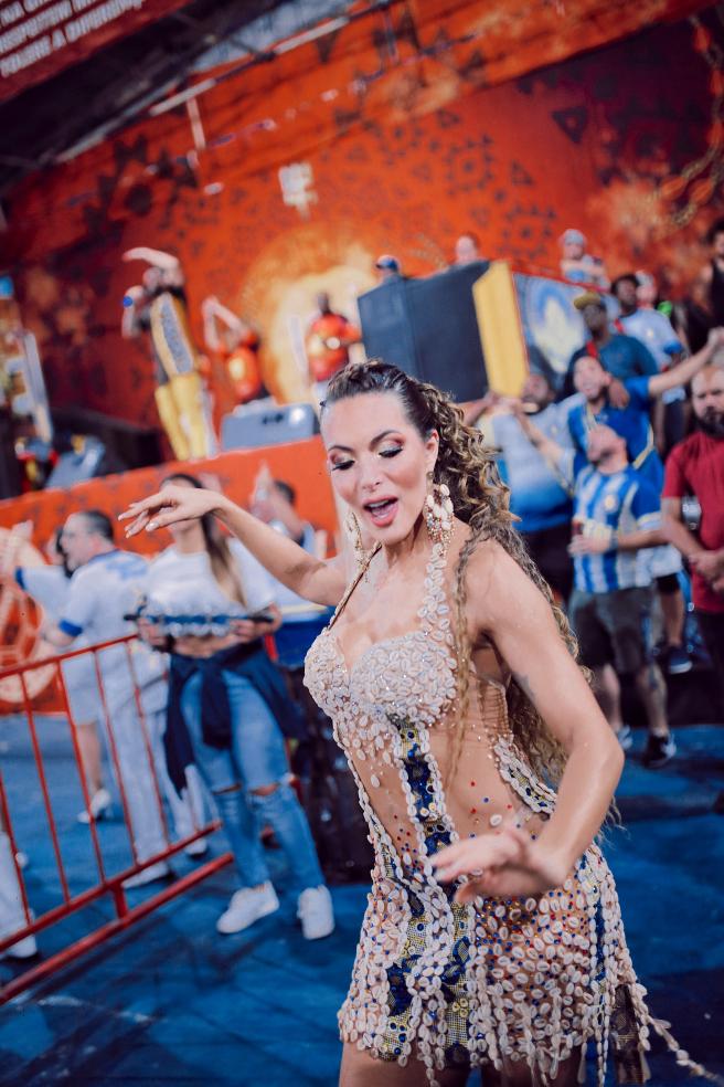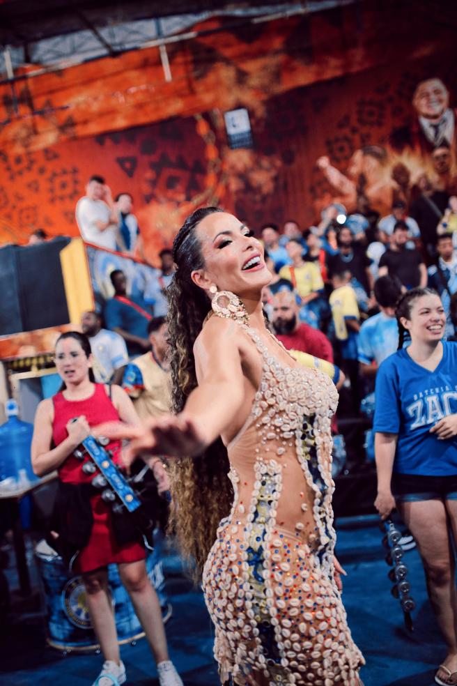 A apresentadora Carla Prata marcou presença no Ensaio da Consciência Negra ocorrido na quadra da Acadêmicos do Tucuruvi, na noite deste domingo, dia 19 de novembro de 2023.