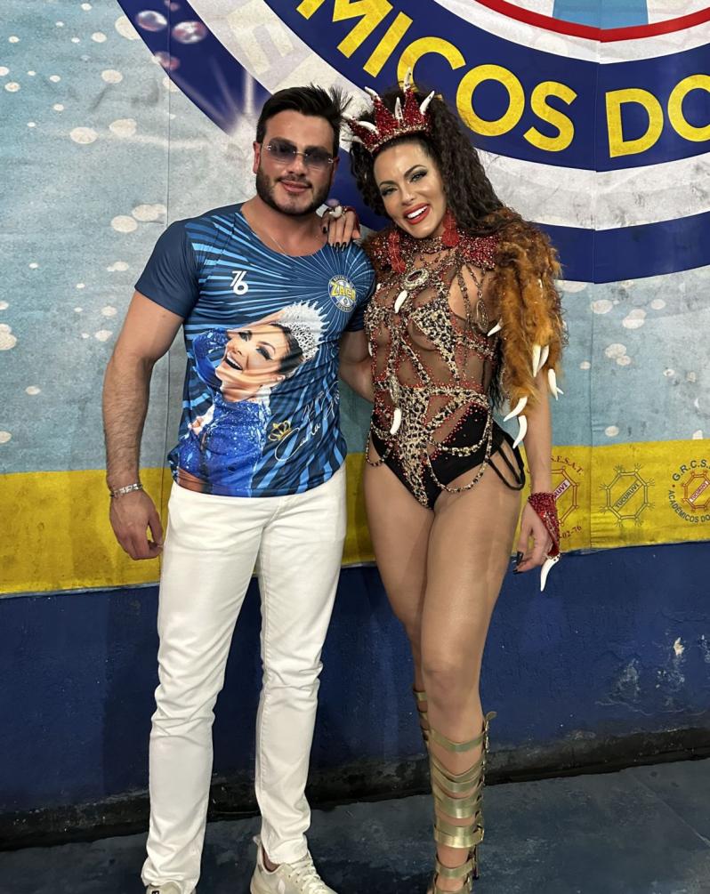 empresário e Mister Brasil 2023, Luiz Gustavo Mustafe, que fez questão de acompanhar de perto cada detalhe da gravação, além de ficar registrando por celular e paparicando a beldade, que no início deste mês completaram dois meses de namoro.
