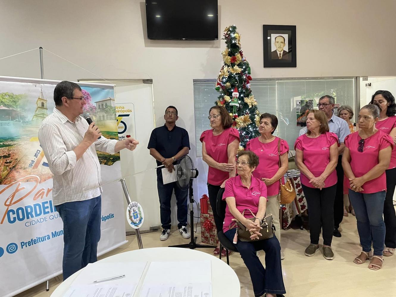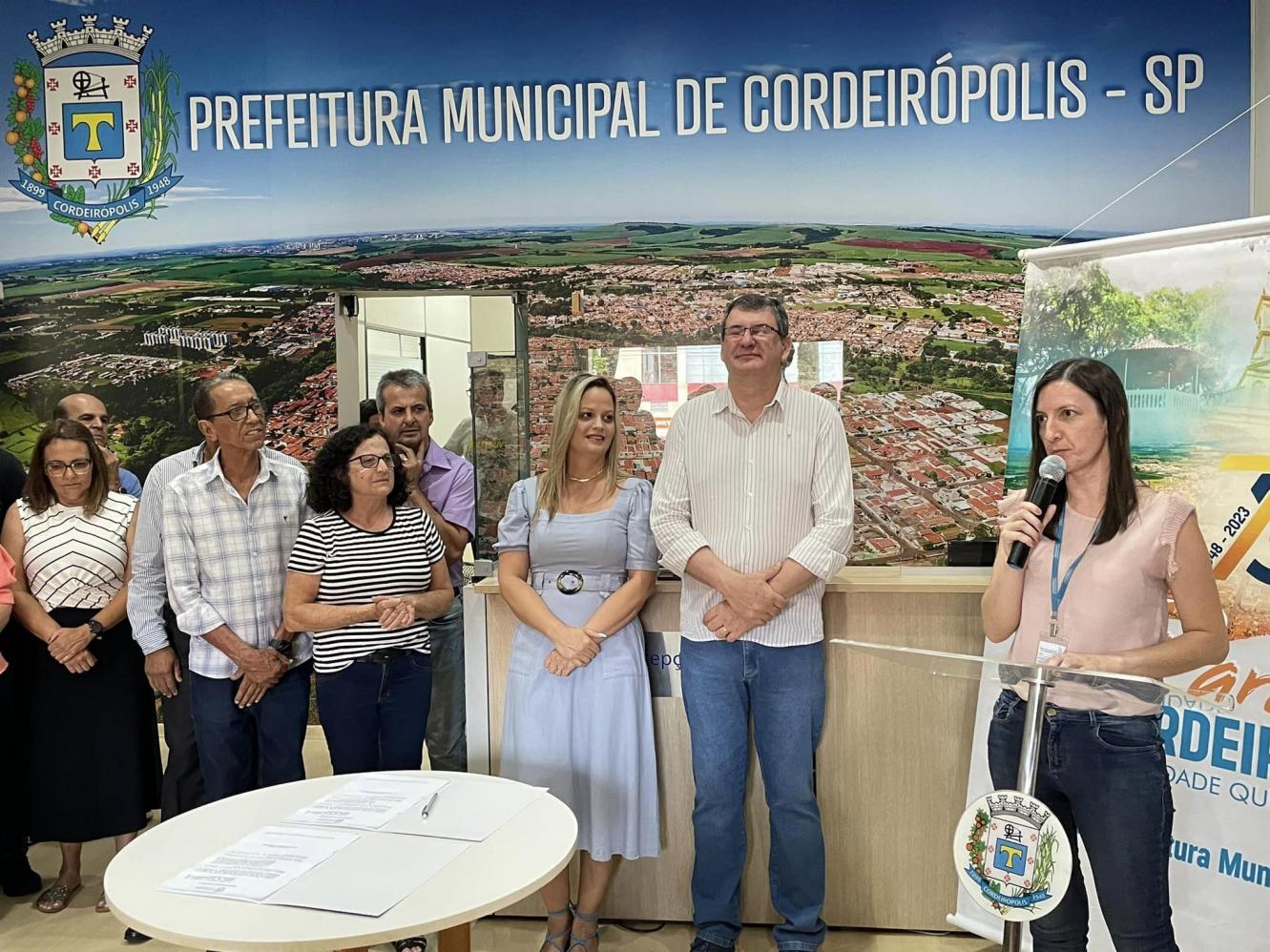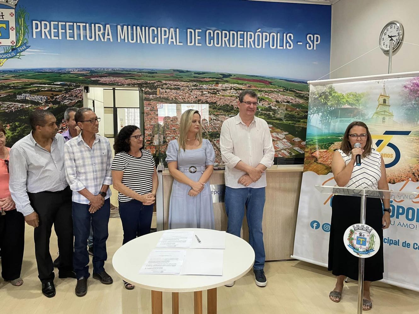 Cordeirópolis, que contou com a presença de representantes do Poder Legislativo, entidades, secretários municipais, o prefeito Adinan Ortolan, juntamente com a secretária de Justiça e Cidadania assinaram o projeto extensivo à Lei Orgânica, que garante o repasse de 2,4% da receita do município para as entidades de Cordeirópolis.