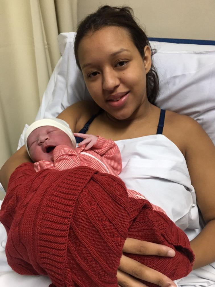 A família recebeu o carinho das equipes que acompanharam o parto e seguem acompanhando a mãe e o recém-nascido.