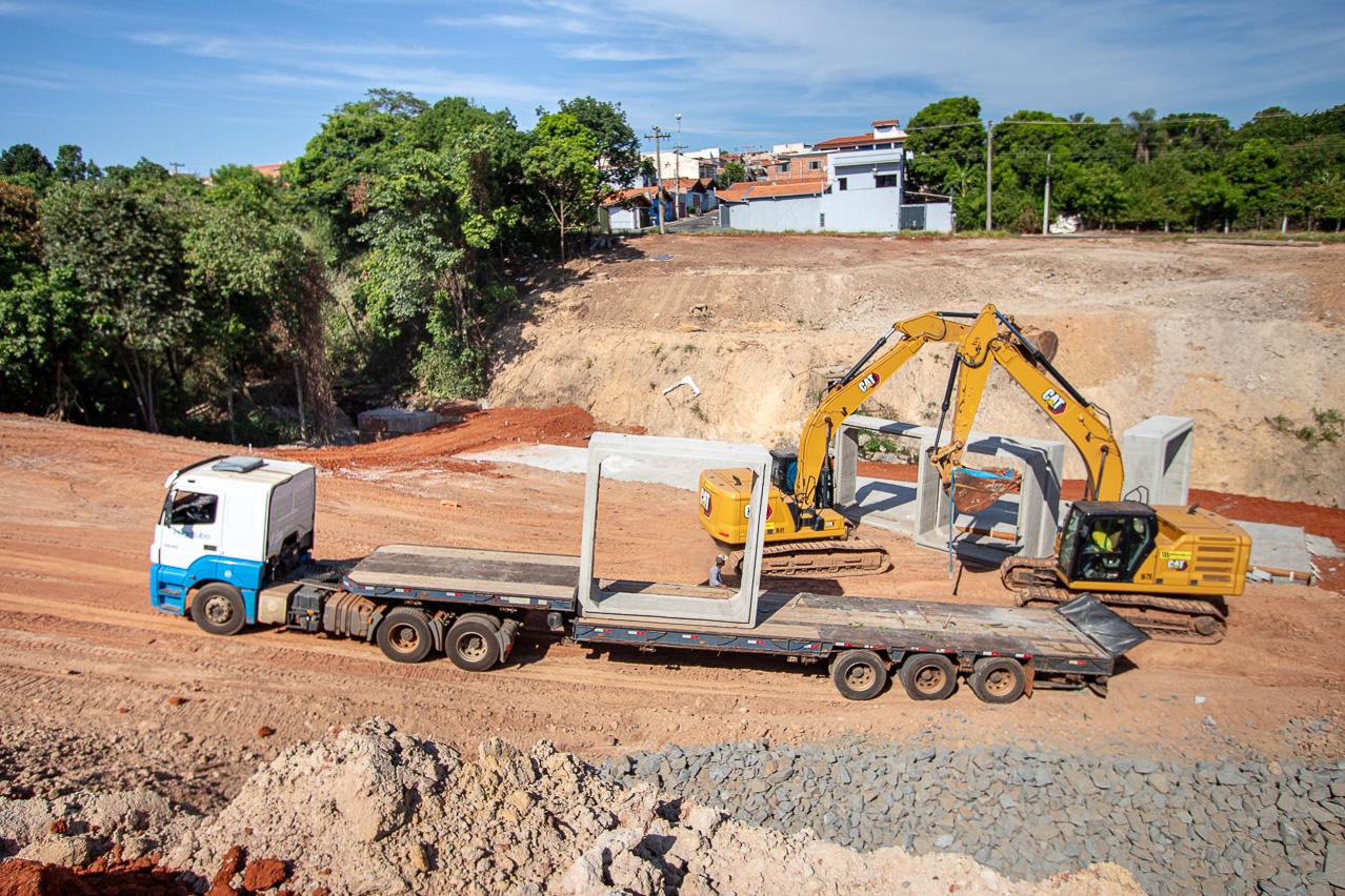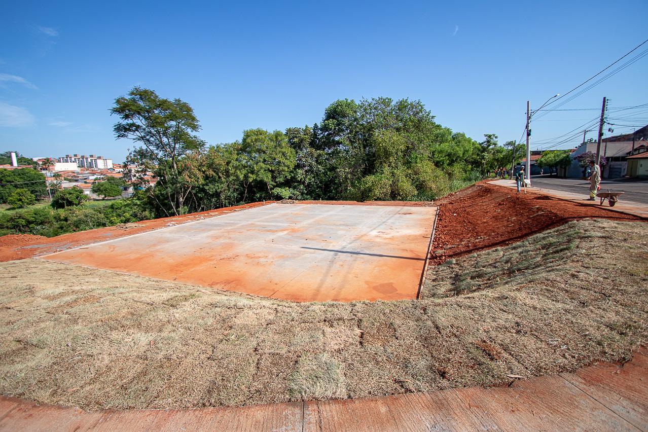 Atualmente, operários fazem a instalação de aduelas sobre o córrego. Em razão do desnível do terreno, o local também é aterrado. Ao todo, serão depositados 12 mil metros cúbicos de terra, o equivalente a 1.200 caçambas de caminhão. Parte das calçadas já está pronta, assim como as bases da quadra de basquete 3x3 e do campo de areia.