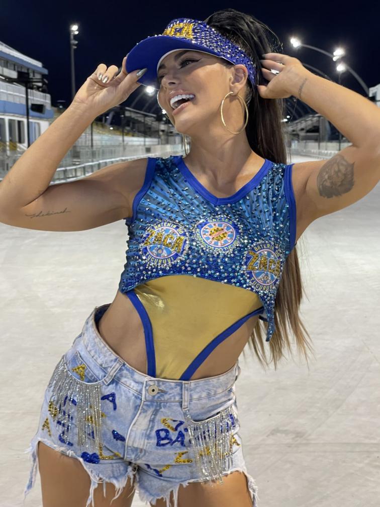 Entre os componentes que participaram do ensaio, estava a Rainha de Bateria Carla Prata que para a ocasião escolheu um look composto por um body dourado totalmente cavado, com uma mini blusa toda cravejada com cristais Swarovski e um shorts jeans despojado todo trabalhado com as letras que compõem o nome 'Bateria do Zaca', além de uma viseira toda estilizada.