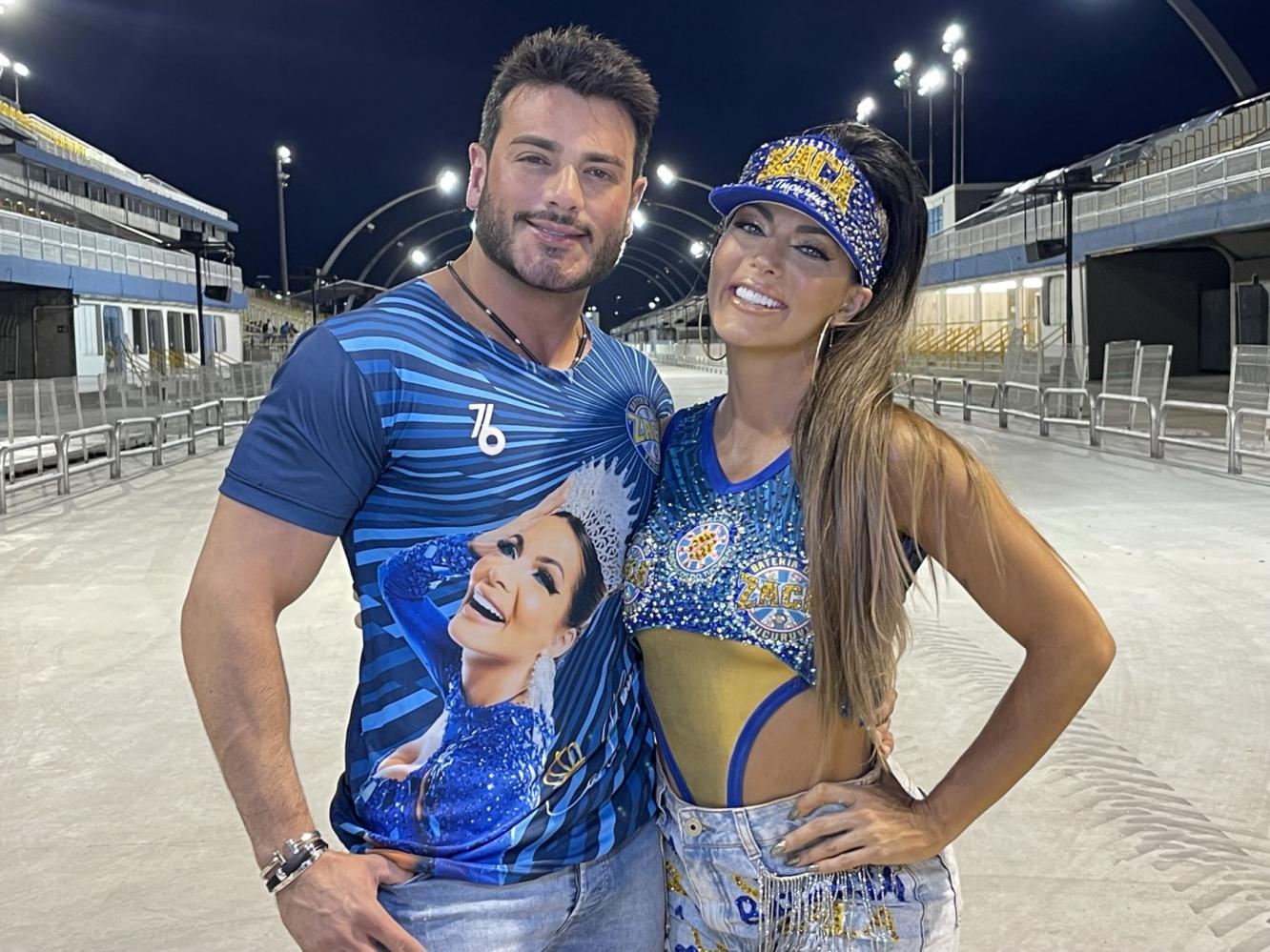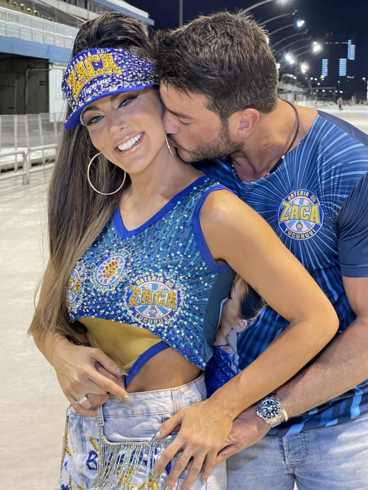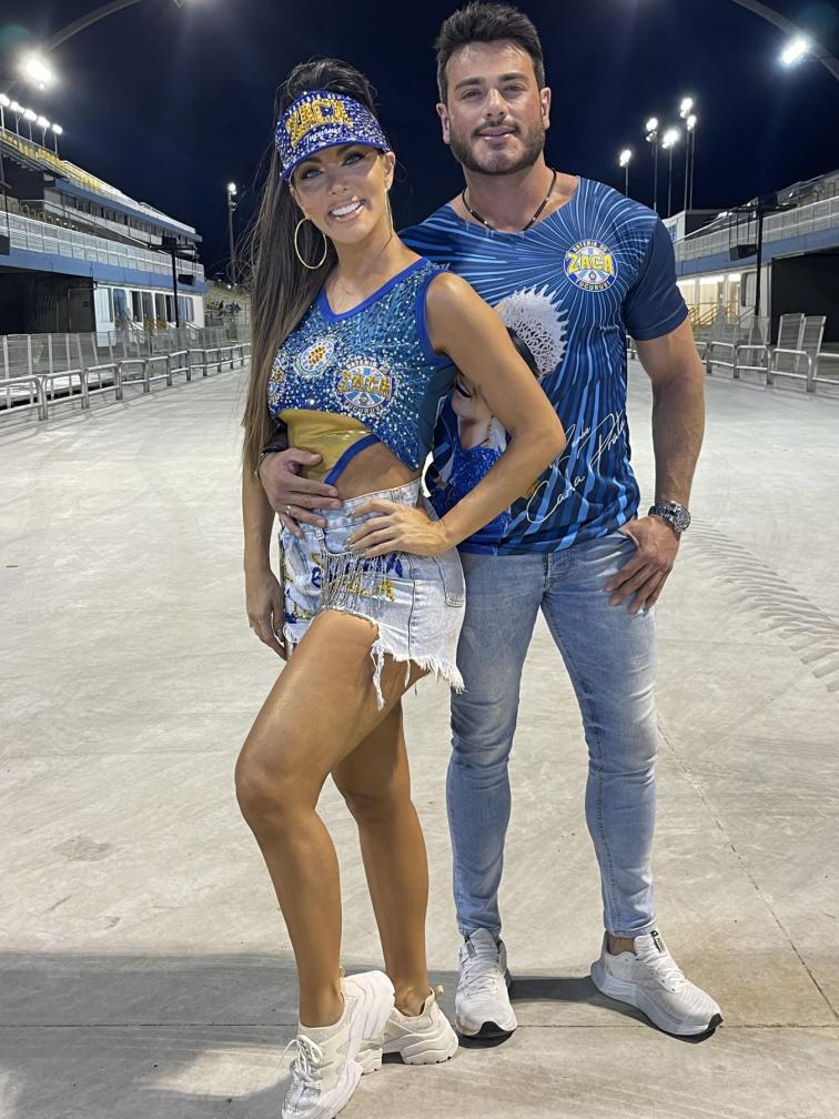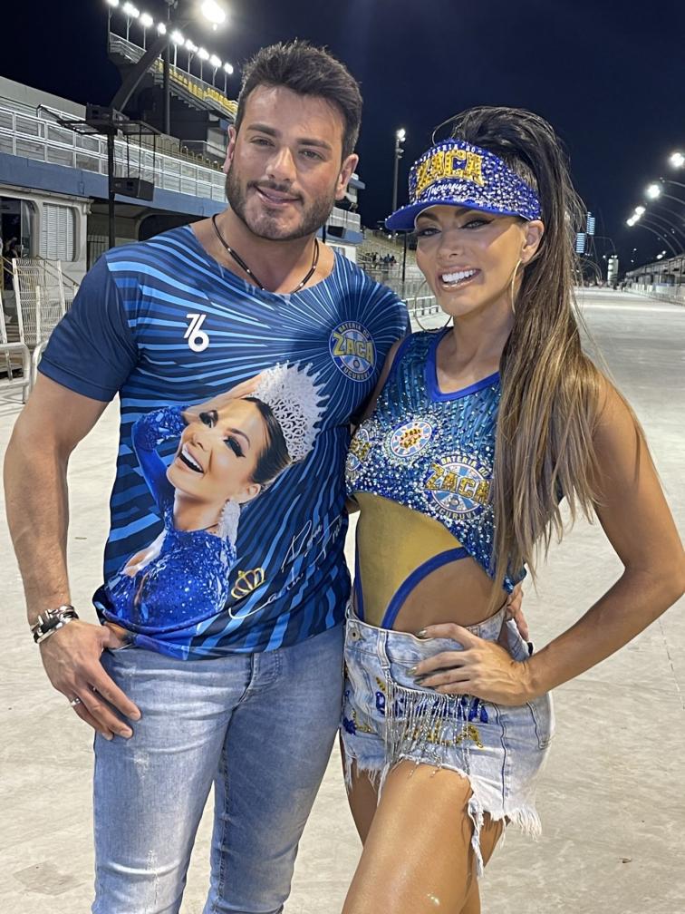 empresário e Mister Brasil 2023, Luiz Gustavo Mustafe, que fez questão de acompanhar de perto cada detalhe do ensaio, além de ficar registrando por celular e paparicando a beldade durante todo o trajeto do Sambódromo.