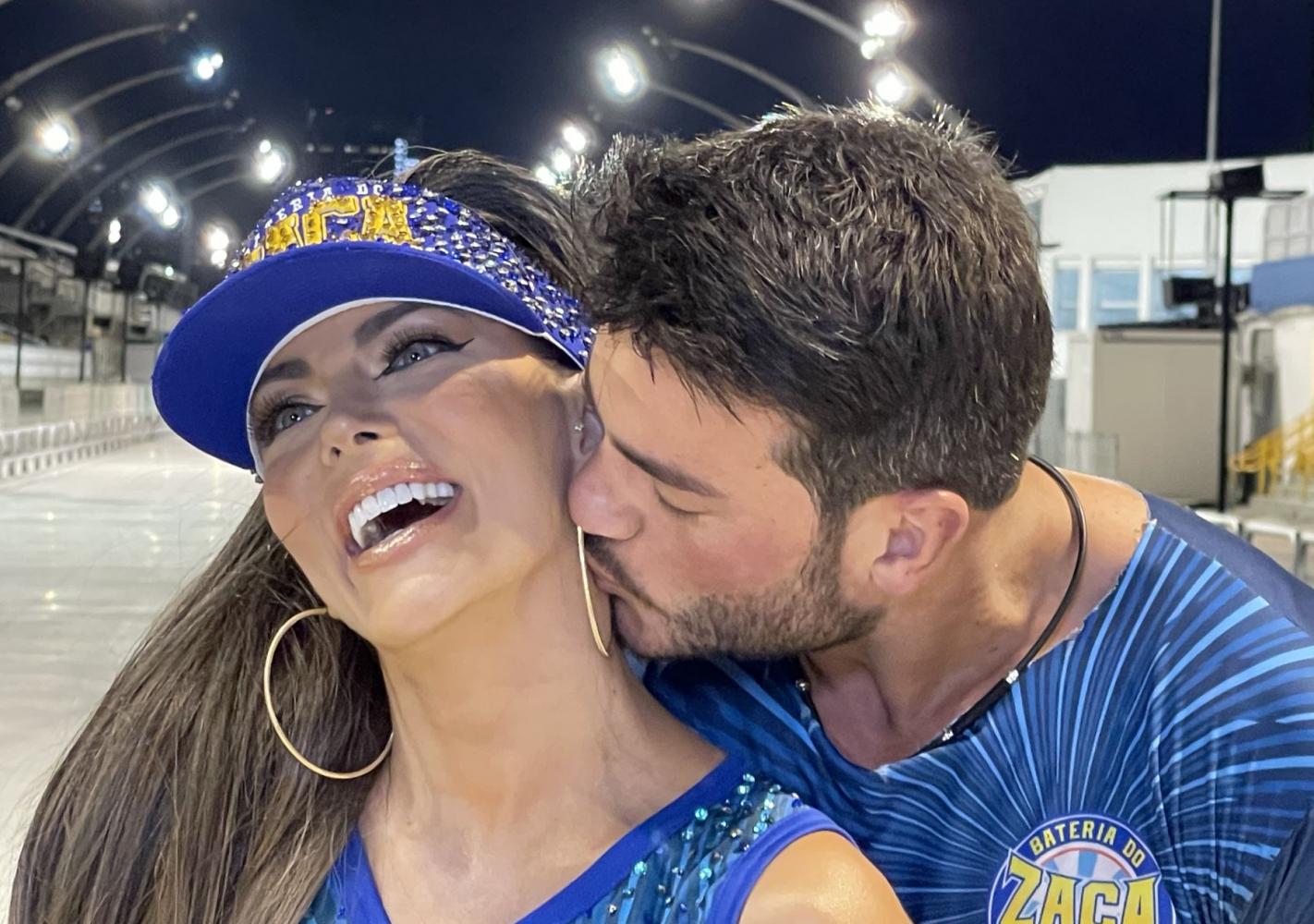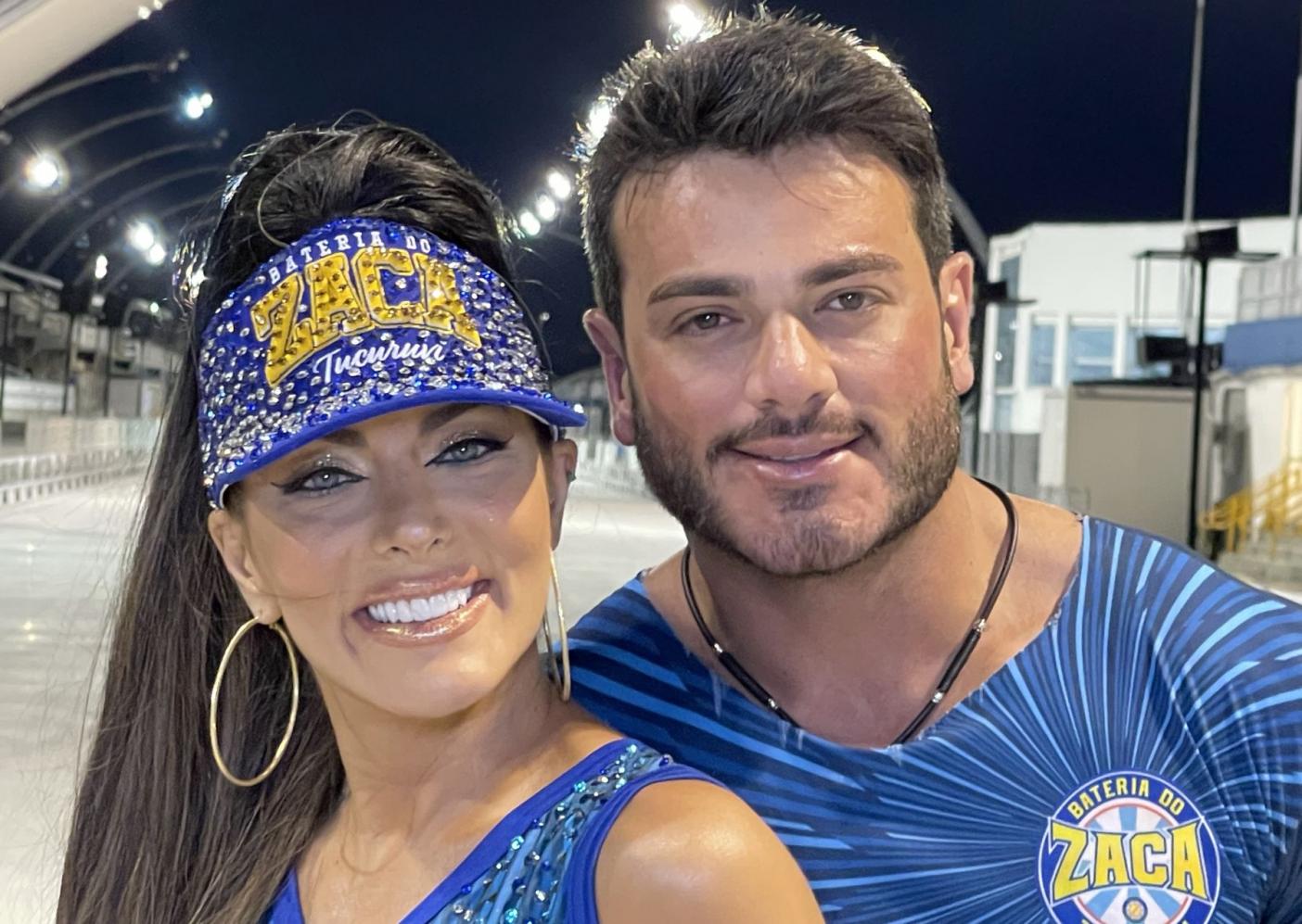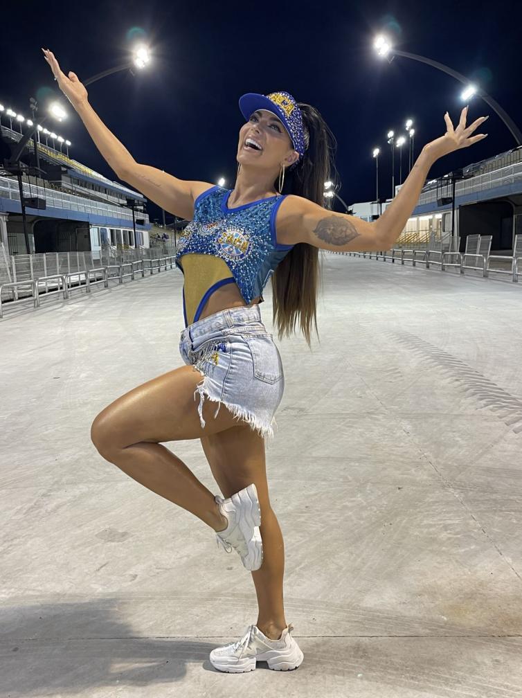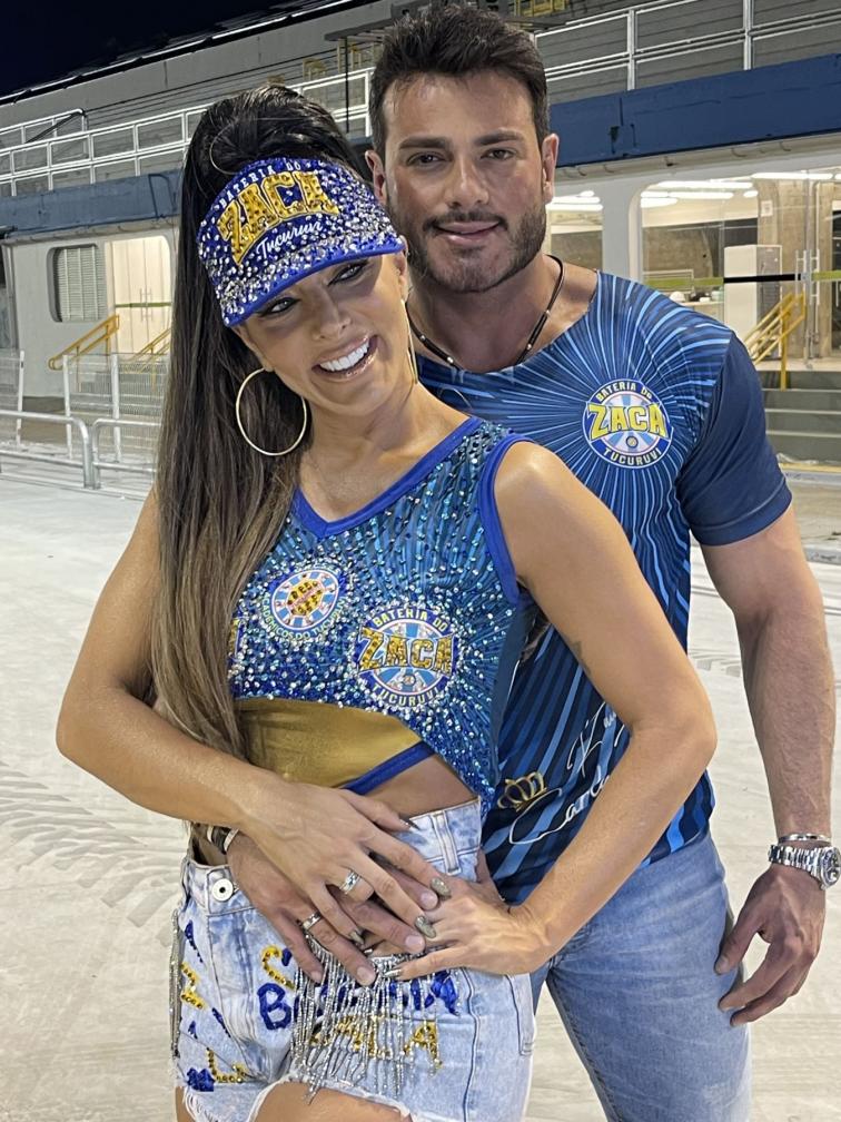 empresário e Mister Brasil 2023, Luiz Gustavo Mustafe, que fez questão de acompanhar de perto cada detalhe do ensaio, além de ficar registrando por celular e paparicando a beldade durante todo o trajeto do Sambódromo.