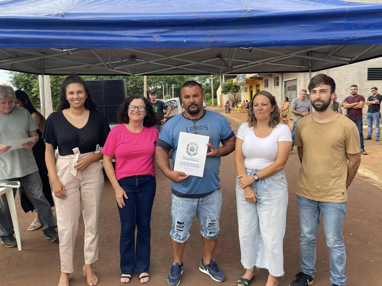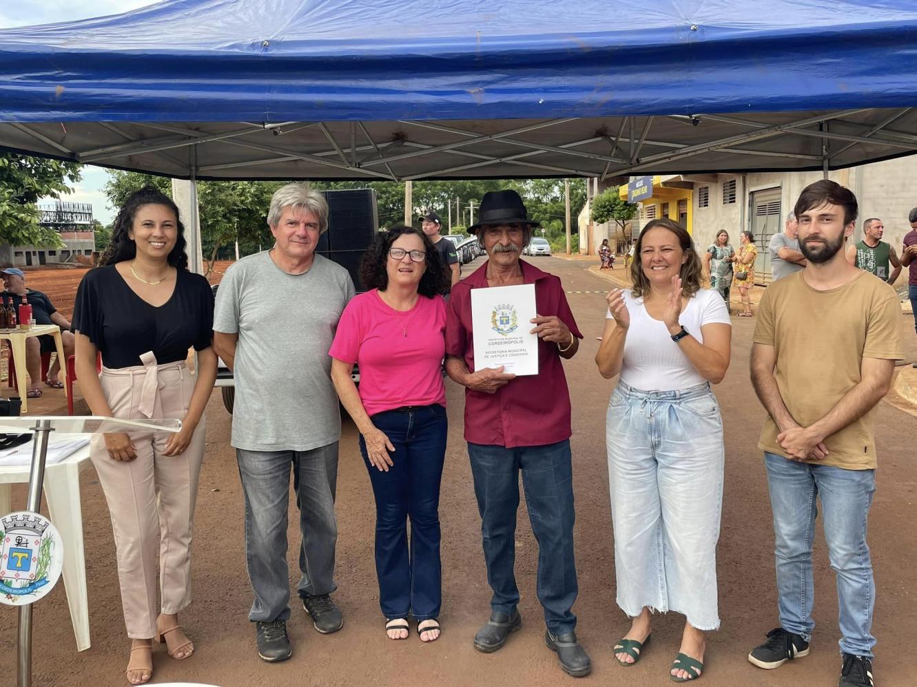 Cordeirópolis, por meio da Secretaria de Justiça e Cidadania, entregou nesta última quarta-feira (17) o título de posse dos imóveis de mais seis famílias do Engenho Velho. No bairro, 118 lotes passaram pelo processo de regularização, e nos anos de 2022 e 2023, outras 82 famílias já receberam o título de propriedade do imóvel.