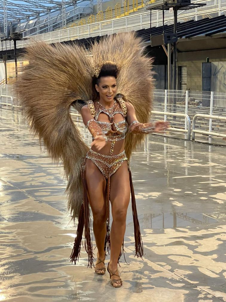 Um pouco antes do desfile, a beldade de olhos azuis se emocionou ao falar em uma entrevista sobre como é reinar à frente da bateria: “é indescritível, porque eu amo estar aqui. Eu amo de coração. É a coisa que eu mais amo fazer na vida”.