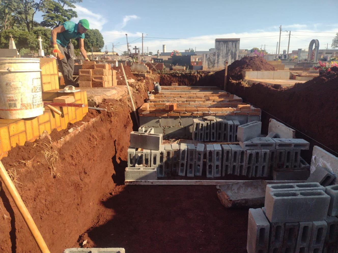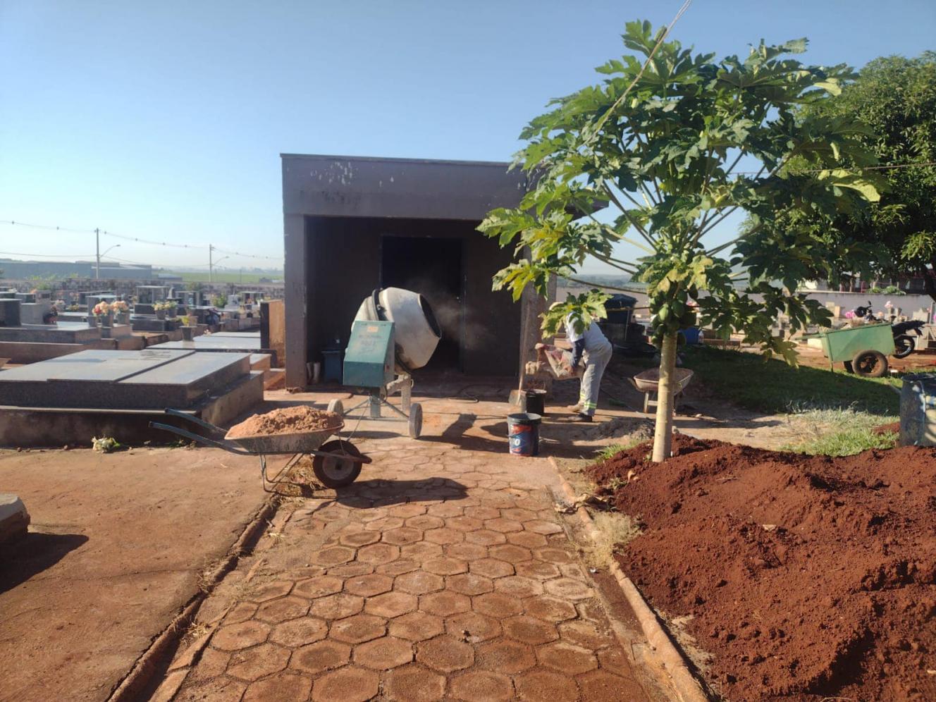 A Secretaria Municipal de Serviços Públicos realizou nesta semana o trabalho de zeladoria que envolve serviços de roçagem no Cemitério Municipal. A construção de novas carneiras, a ampliação de novas sepulturas também ocorre no local.