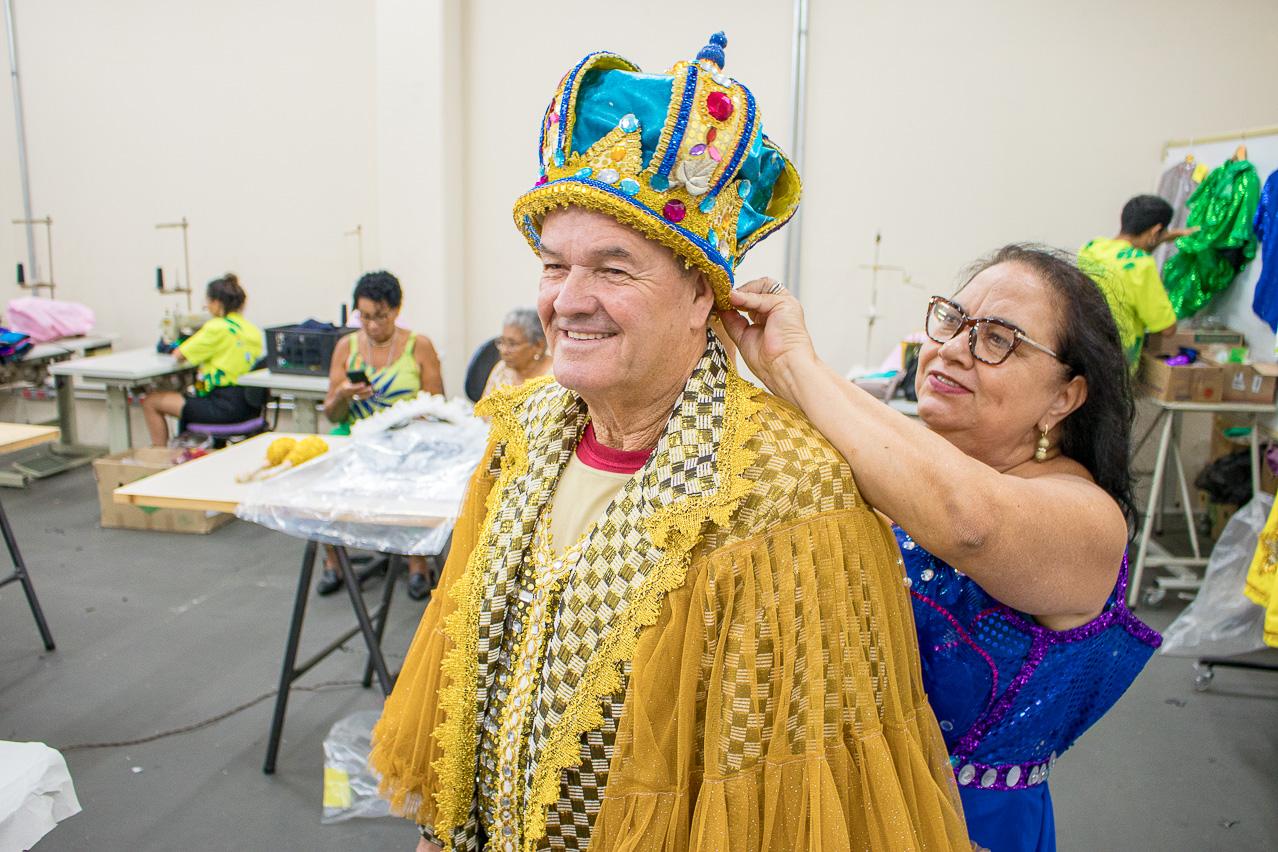 A Escola de Samba Unidos da Terceira Idade conta com mais de 90 idosos. Em meio a paetês, tecidos e plumas, integrantes do grupo experimentaram as fantasias e adereços. “É uma grande alegria participar do