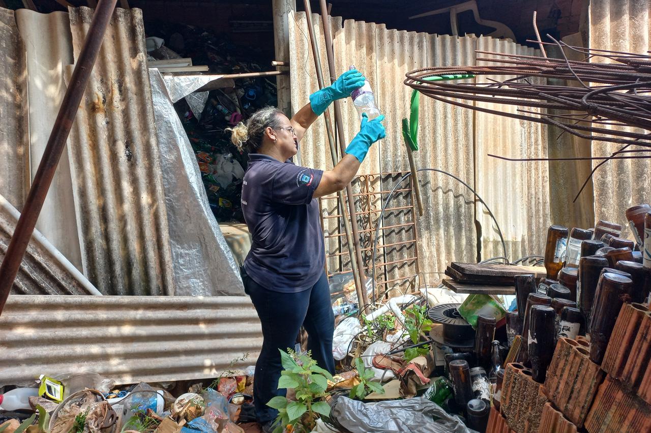 Limeira iniciou nesta última quinta-feira (7) uma ação de limpeza compulsória em uma casa no Jd. Nova Conquista. O local abriga grande quantidade de inservíveis que oferecem risco à saúde pública, como embalagens, garrafas pet e de vidro, coberturas plásticas, restos de telha, além de uma pilha de tijolos que servem de abrigo para animais peçonhentos e ratos. Larvas de mosquito foram recolhidas e serão analisadas para verificar a compatibilidade com o Aedes aegypti.