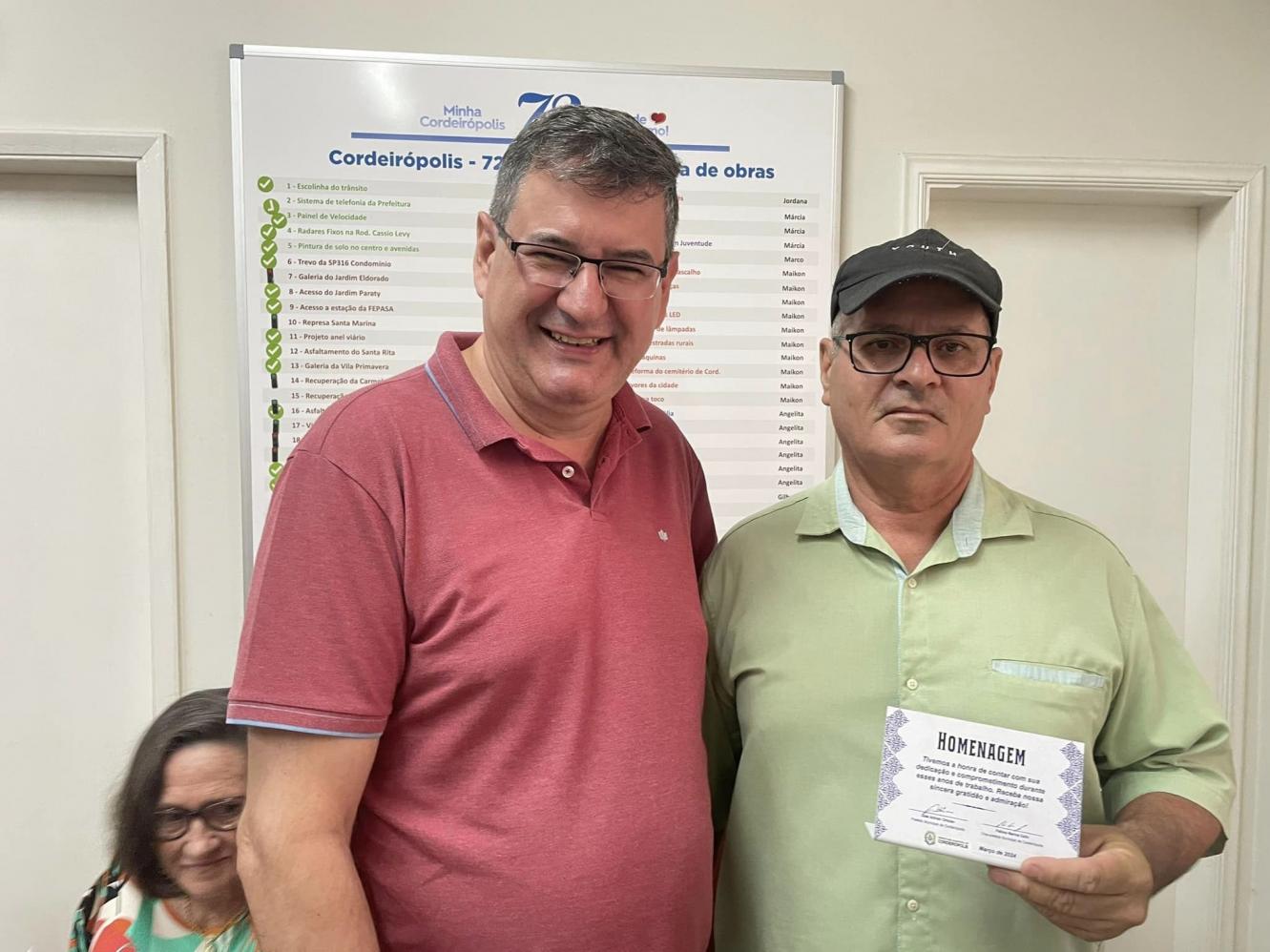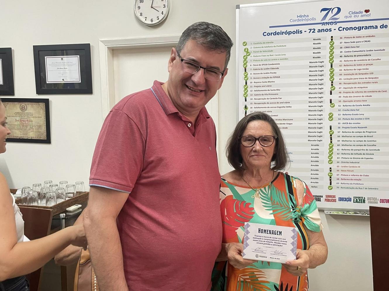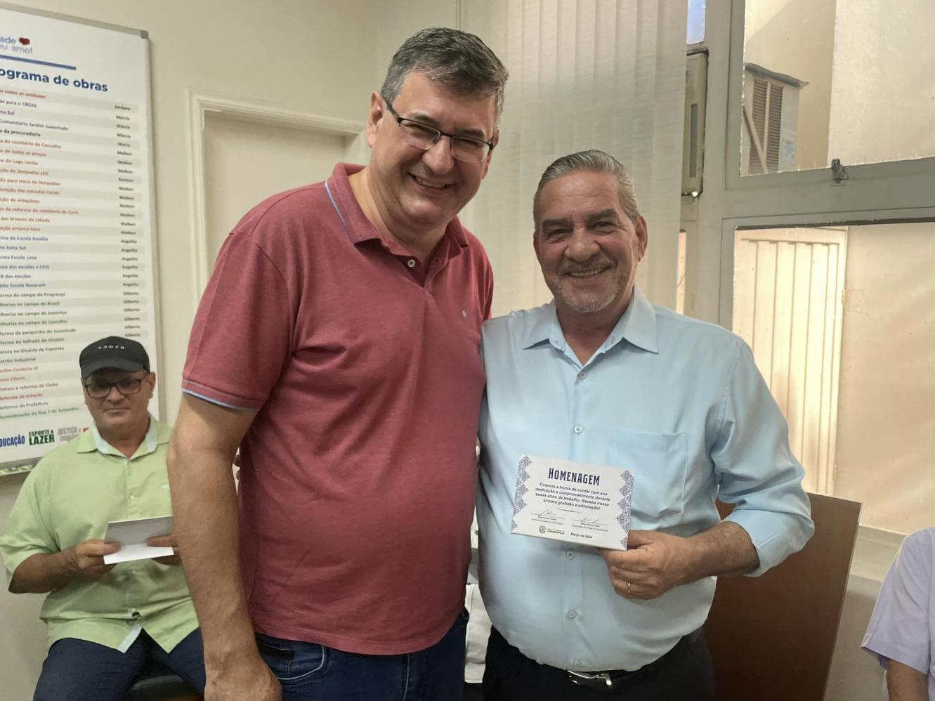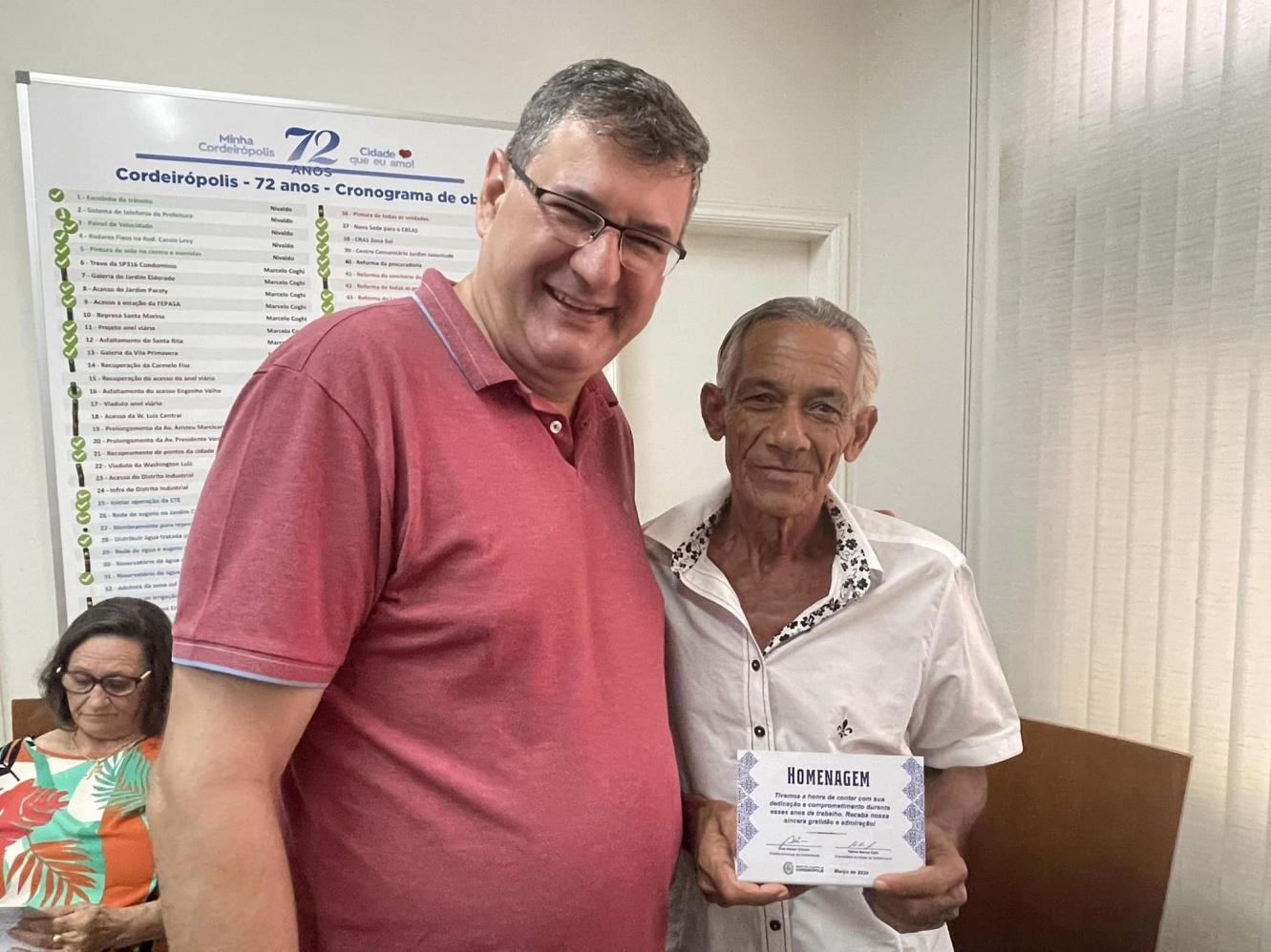 “Este é um momento muito importante e que deve sim ser marcado com uma homenagem. O serviço público exige muito de nós e aqui temos pessoas que chegaram a dedicar quase 40 anos ao município e por isso merecem nosso respeito e a nossa gratidão”, pontuou o prefeito.