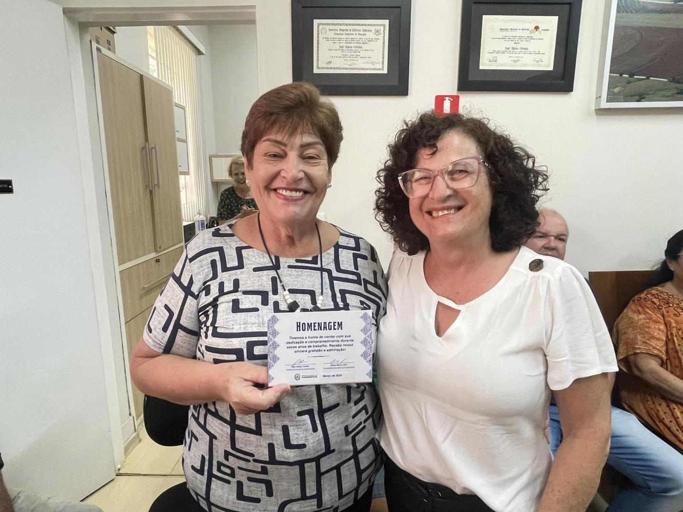 Para homenageá-los, o encontro contou com a presença da vice-prefeita, Fátima Celin, a primeira-dama e a secretária de Educação Angelita Ortolan. No total 28 servidores aderiram ao Programa de demissão voluntária.