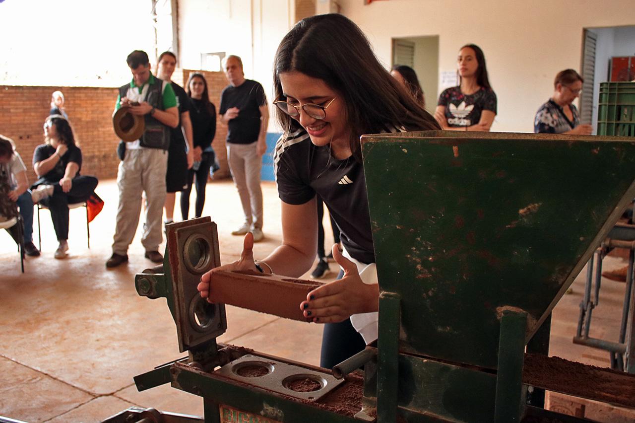 Após a explanação, os estudantes puderam experimentar o processo de fabricação dos tijolos, operando tanto a máquina nova quanto a manual (mais antiga). Luis Amaral destacou que mantém uma relação longa com a Secretaria de Habitação e que desde 2016 acompanha as ações da pasta. “Vim a Limeira apresentar aos alunos a beleza de um equipamento que produz tijolos ecológicos e saio daqui encantado”, disse. “A Arquitetura deveria ser para todos e a proposta desenvolvida pela Secretaria de Habitação, voltada ao interesse social, mostra bem essa possibilidade”, completou.