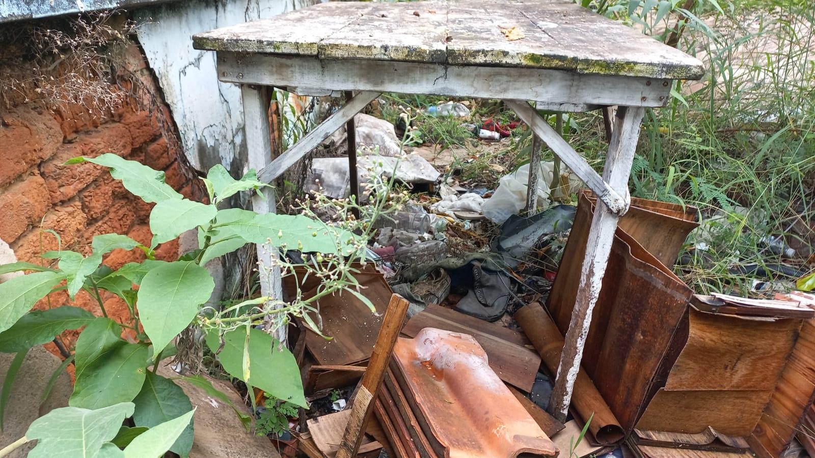 O local abrigava grande volume de entulho, lixo e inservíveis. Por esse motivo, o material foi retirado com auxílio de uma retroescavadeira e levado de caminhão ao Aterro Sanitário. Agentes de zoonoses não identificaram larvas de mosquito, porém recolheram vários recipientes propícios à formação de criadouros.