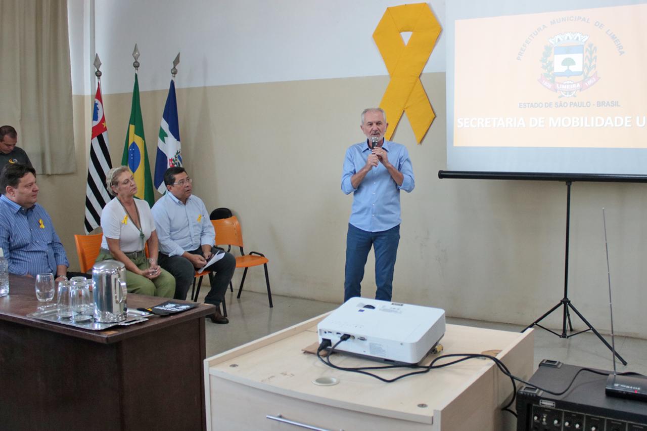 Após a abertura da campanha, o chefe de Divisão de Fiscalização de Mobilidade Urbana, Norivaldo Gabriel Filho, ministrou uma palestra sobre o tema. Prestigiaram o evento, os secretários Sérgio Moreira (Comunicação Social), Wagner Marchi (Segurança Pública e Defesa Civil), Luiz Alberto Battistella (Administração), Reinaldo Belussi (Meio Ambiente e Agricultura)e José Aparecido Vidotti (Fazenda).diretores da pasta, Felipe Dollevedo, Nilson Pasqualotto e Felipe Zimmermann, o chefe dos agentes de trânsito, Claudinei Veloso.
