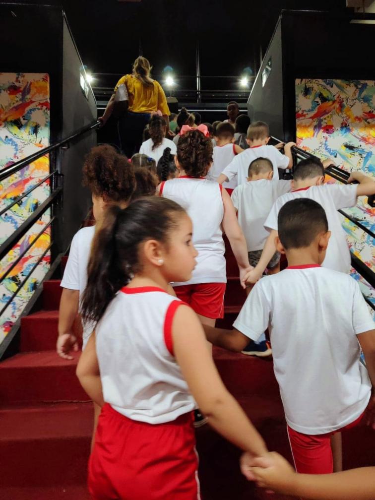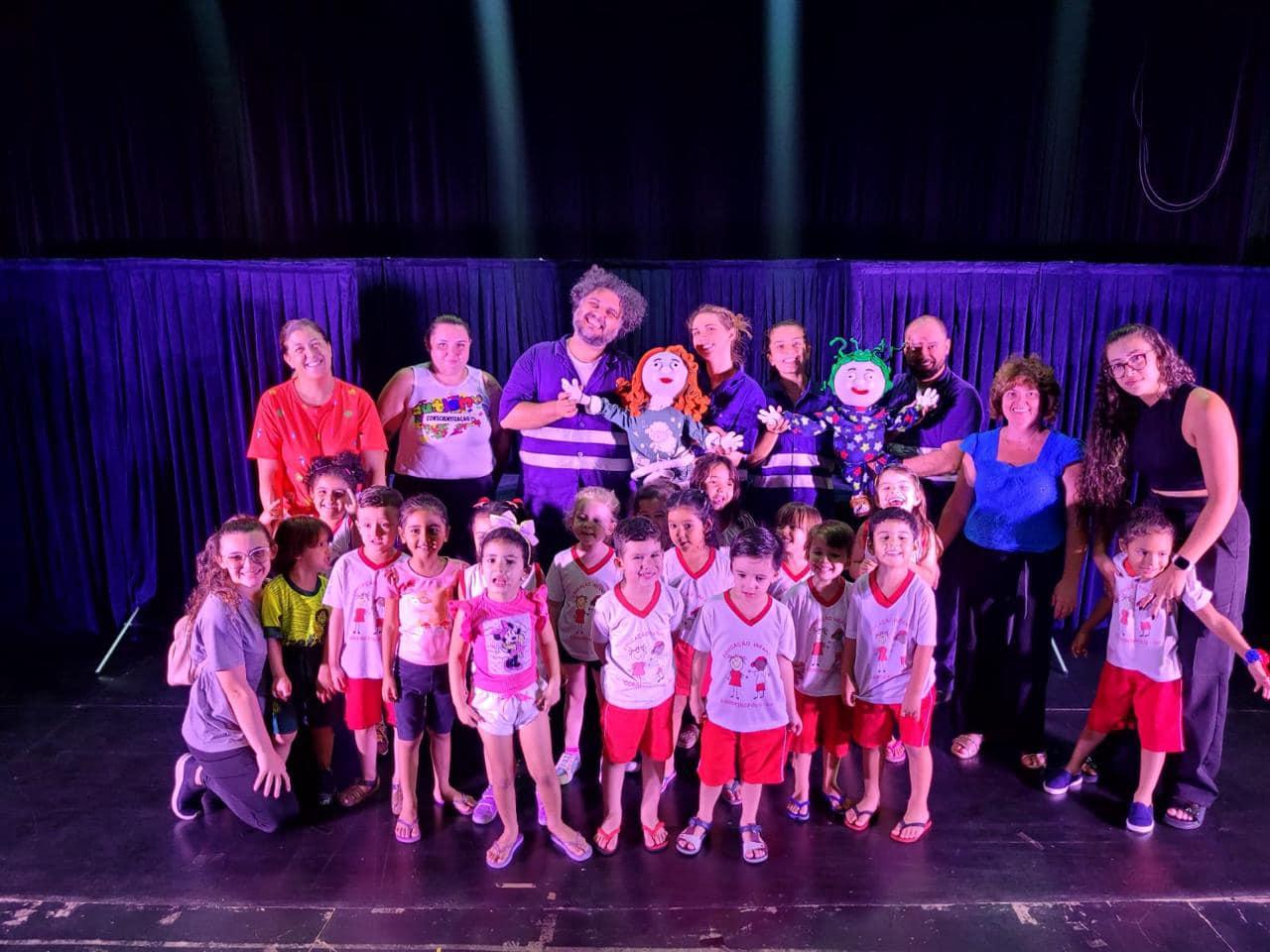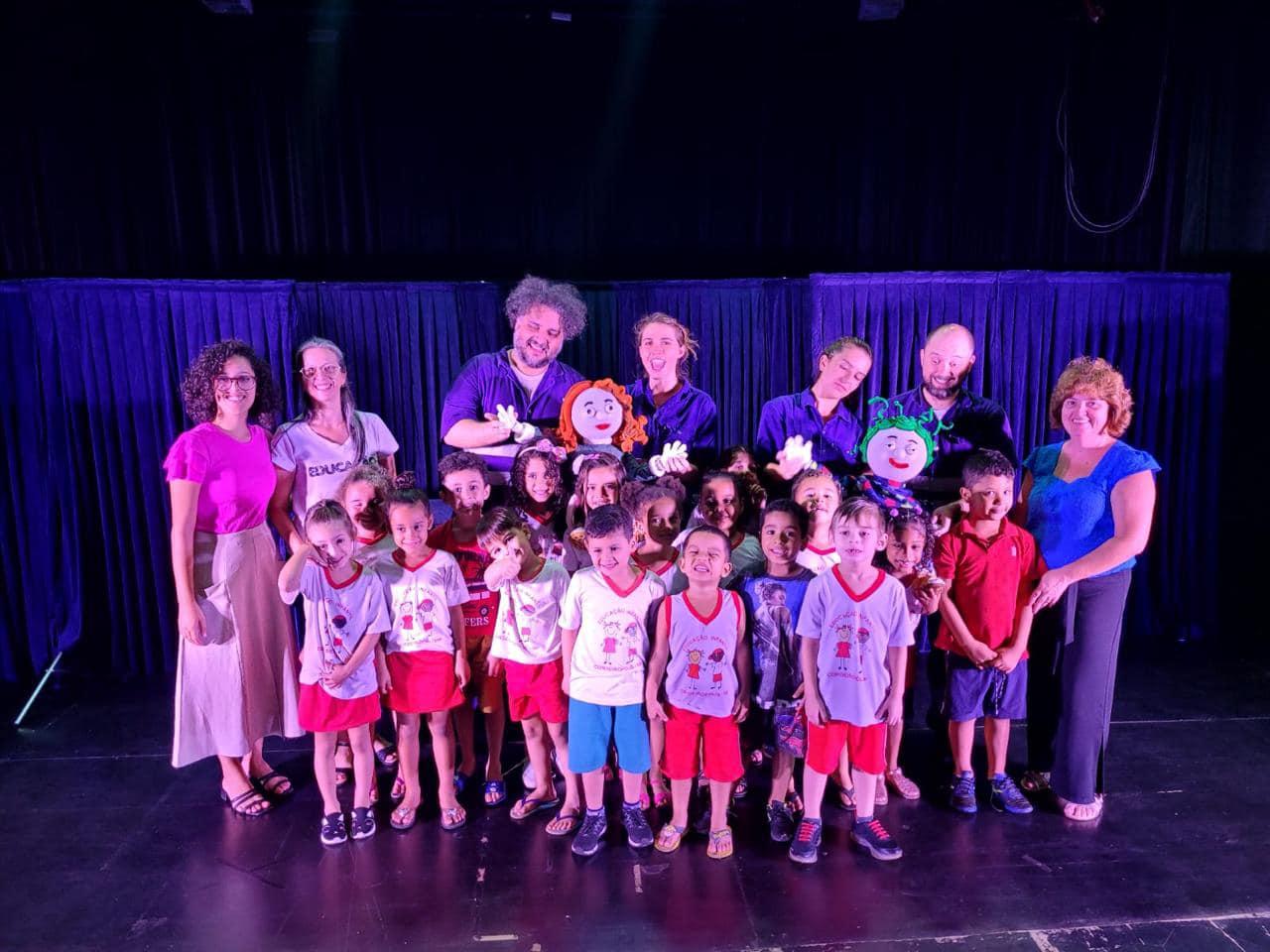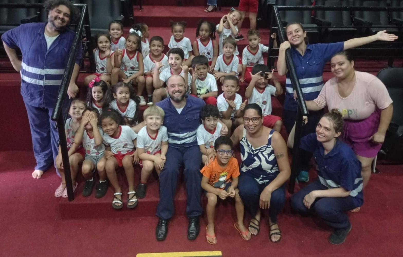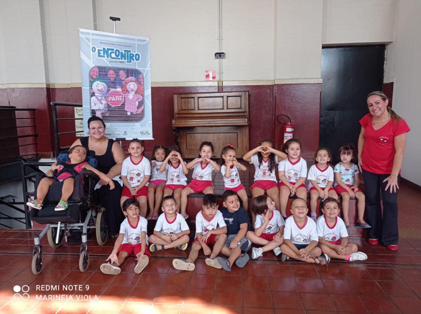Os pequenos estudantes estiveram no Teatro Municipal, para prestigiarem a peça que aborda com sensibilidade e poesia um tema que envolve todos os cidadãos, desde pequenos, através dos tradicionais bonecos do grupo para desenhar a rotina de dois personagens que cotidianamente vivem os problemas do trânsito em suas cidades.