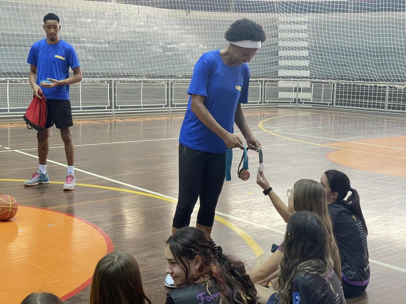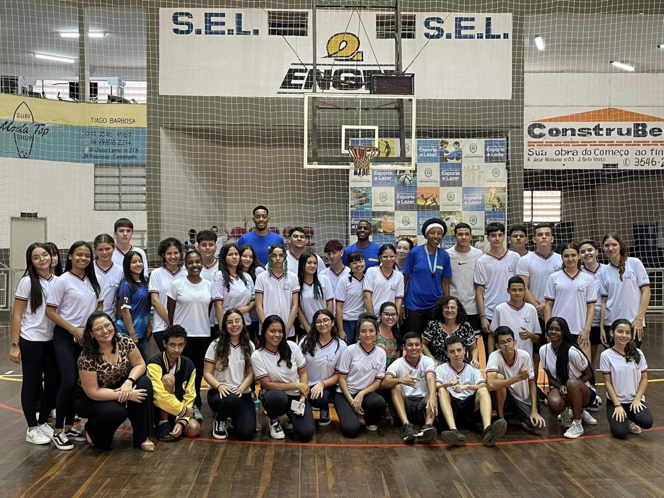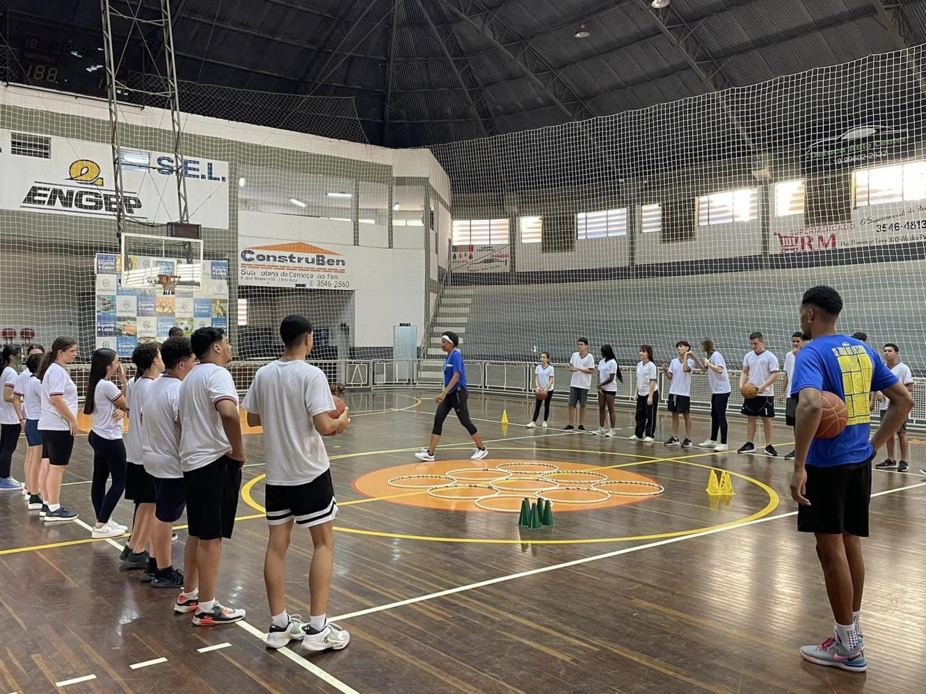 Cordeirópolis de Basquete participaram na tarde da última segunda-feira (13) de uma série de atividades comandada pela multicampeã do Basquete Janeth Arcain.