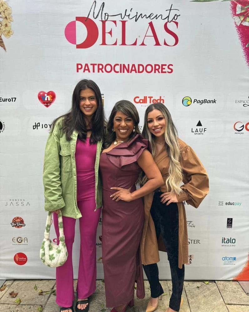 Hana Khalil(influenciadora), Patrícia Fazan (Idealizadora do projeto Movimento Delas) e Thaís Giraldelli (influenciadora) - Crédito/ Foto: Carol Freitas Assessoria