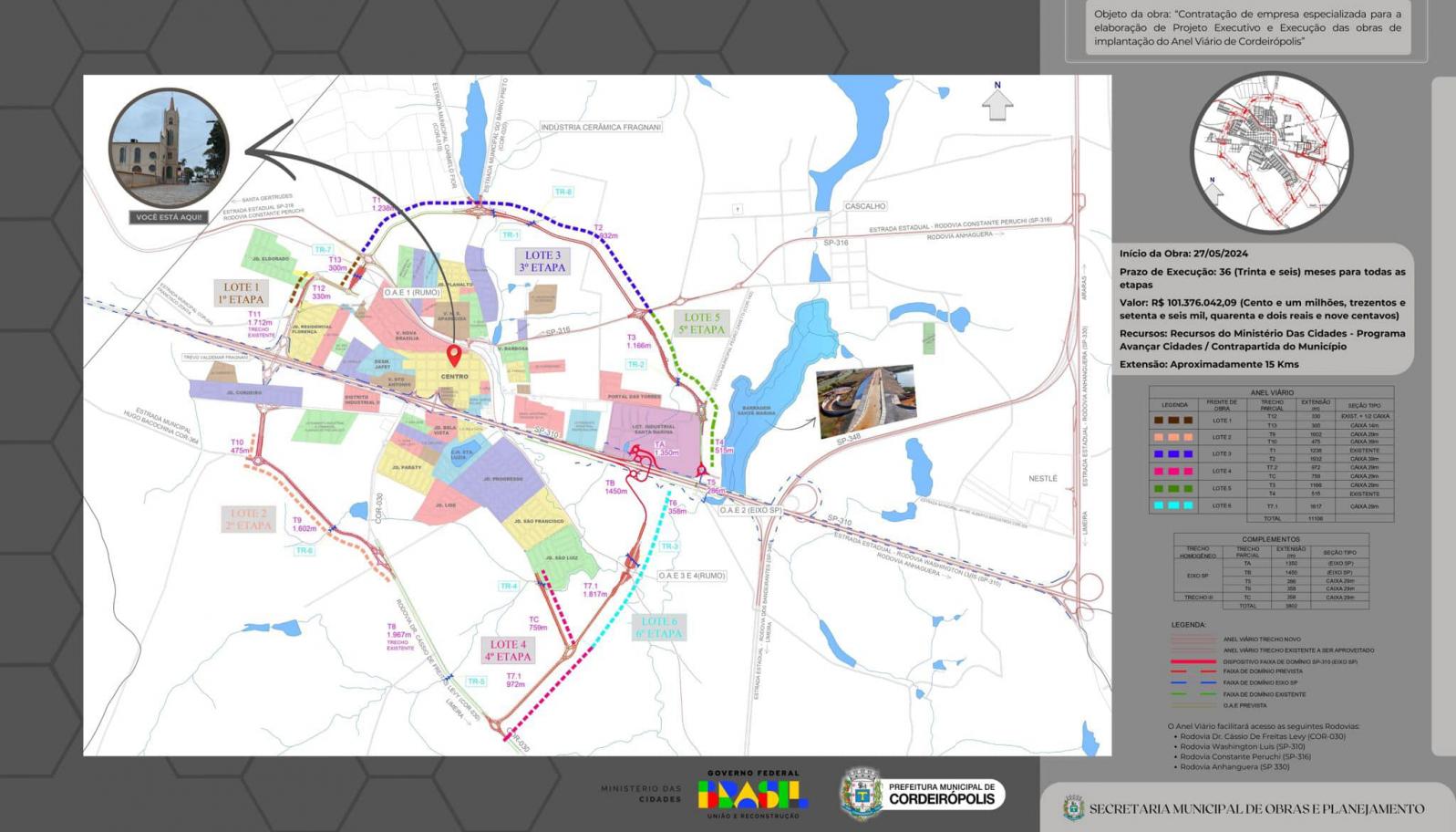 Cordeirópolis, uma vez, que autoridades como o secretário Nacional de Mobilidade Urbana, Denis Andia, o deputado Federal Baleia Rossi, membros dos Poderes Executivo e Legislativo municipal e da região se reuniram para a cerimônia de assinatura da ordem de serviço para a execução do Anel Viário de Cordeirópolis, uma obra aguardada com muita ansiedade por todos os moradores há anos.