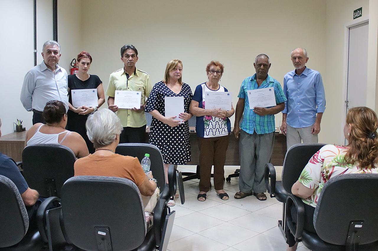 Os recém-aposentados receberam certificados de agradecimento pelos serviços prestados à Prefeitura de
