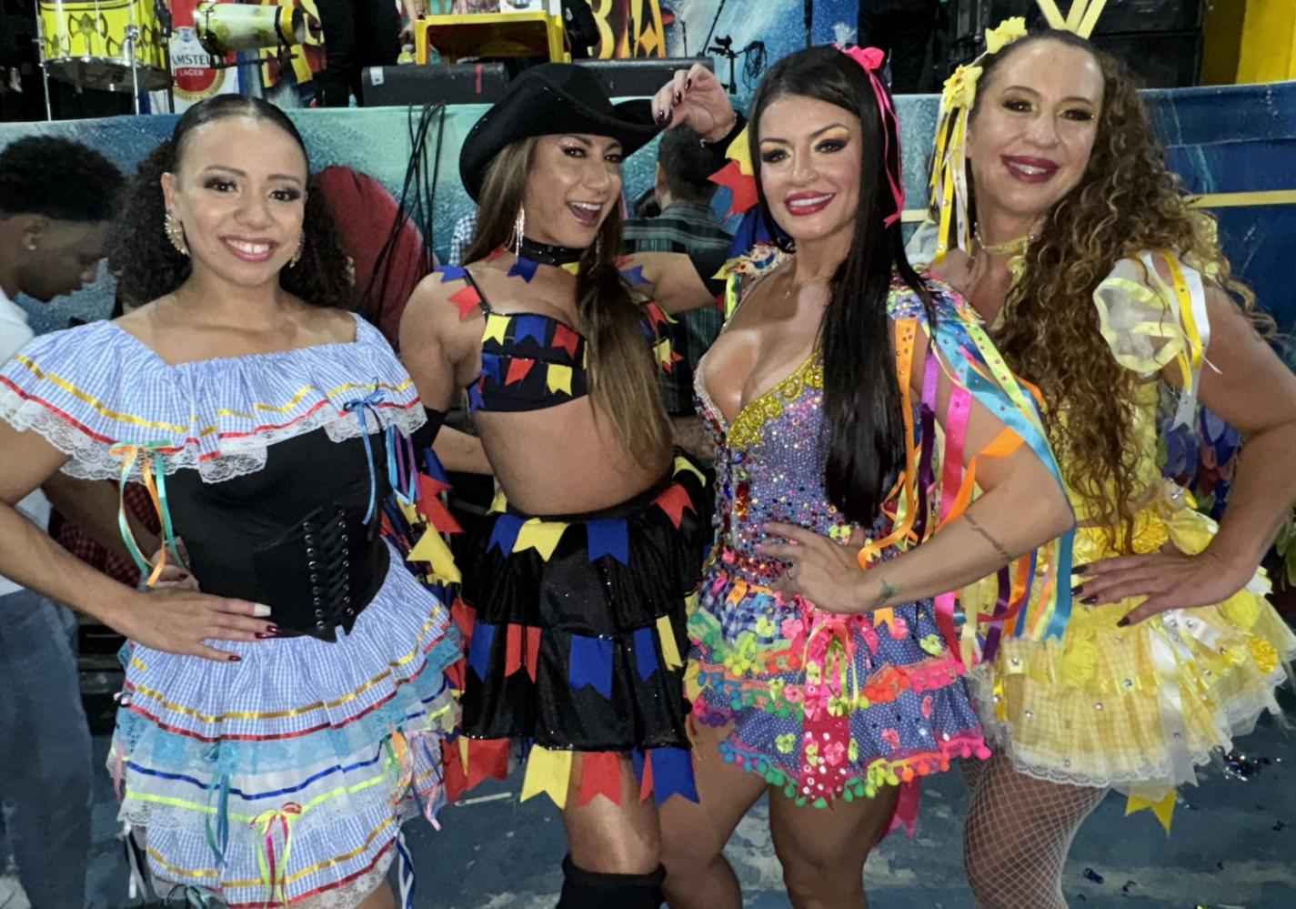 Toda comunidade se vestiu a caráter e entrou no clima do arraiá, entre elas o time de Musas, Passistas e Malandros da escola que não fizeram por menos e deram um show de simpatia e muita elegância nos trajes caipiras..