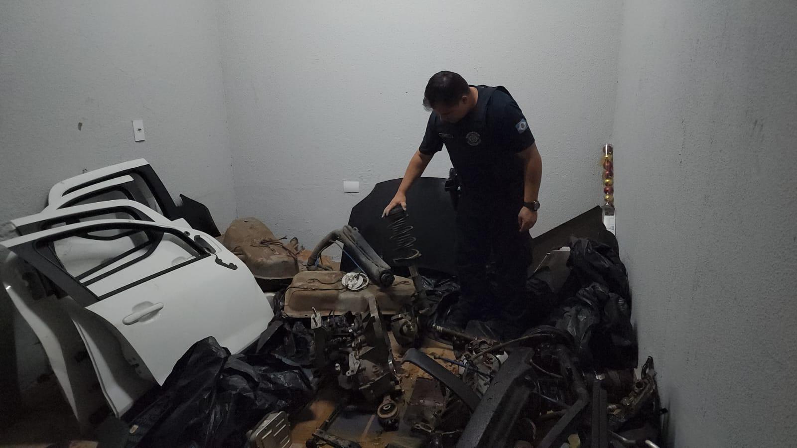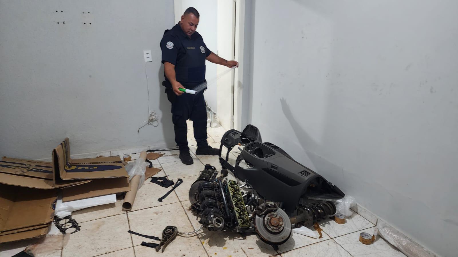 Com a chegada da GCM, foi verificado que o portão estava aberto. No interior de dois cômodos, os agentes encontraram centenas de peças de vários carros, embalagens plásticas e caixas de armazenamento, sugerindo que o suspeito vendia as peças pela internet.