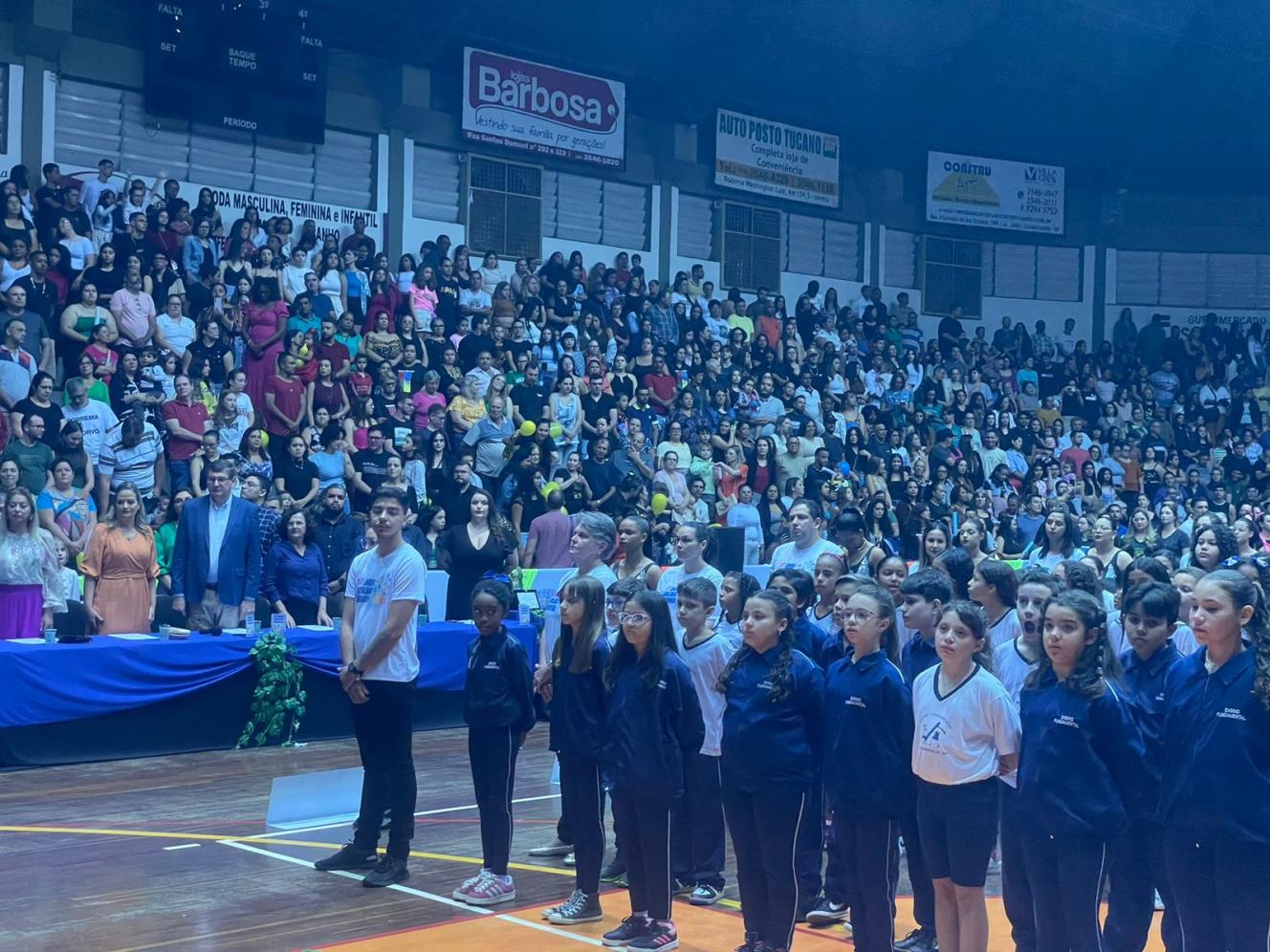 O Prefeito Adinan Ortolan fez um discurso de abertura, declarando oficialmente o início dos Jogos Escolares Municipais 2024. As competições começaram com a modalidade de Dança, apresentando performances das escolas participantes.