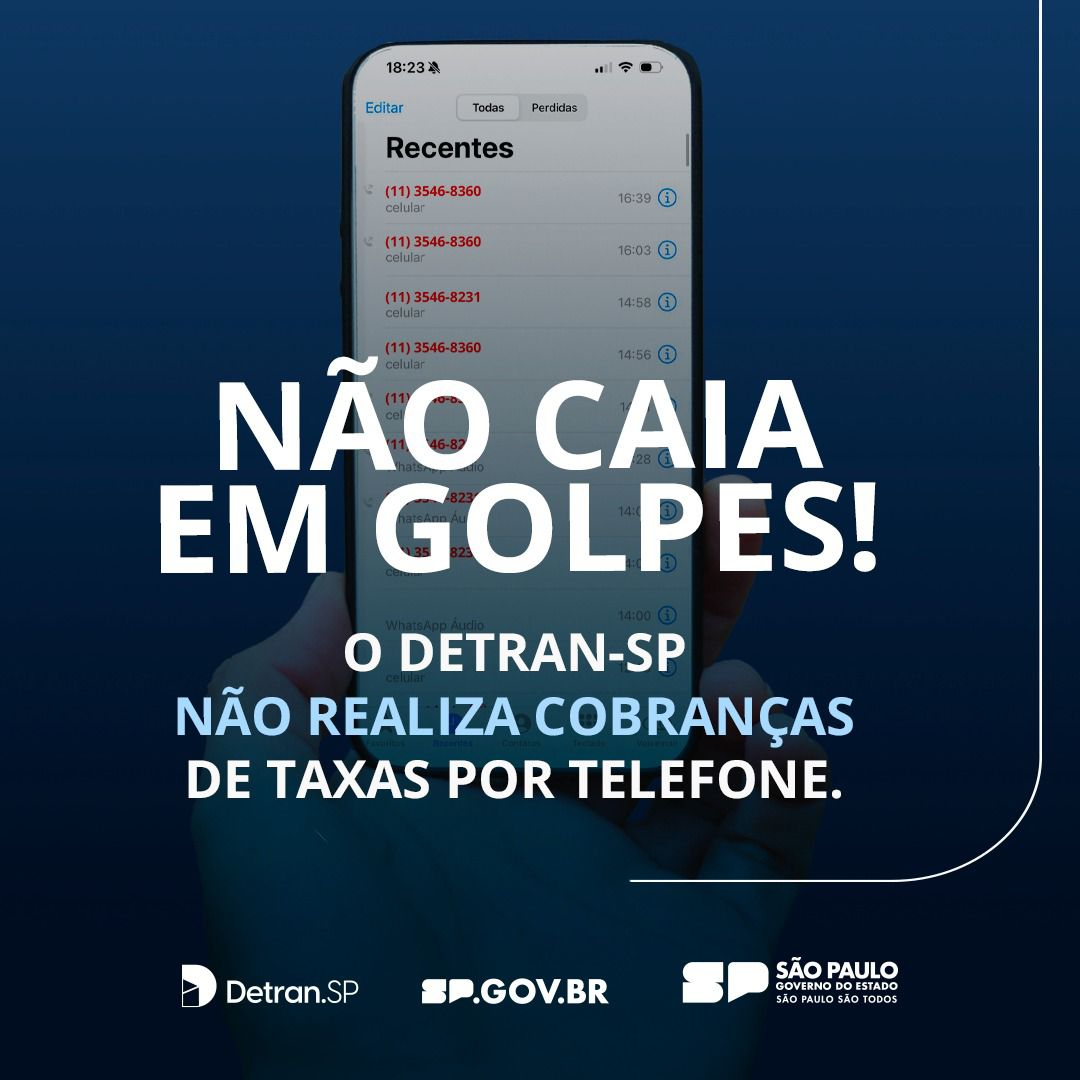 O Detran-SP não faz cobranças ou ameaças por telefone. Vale lembrar que o órgão, vinculado à Secretaria de Gestão e Governo Digital (SGGD), está em processo de transformação digital, com a automação dos serviços prestados à população.