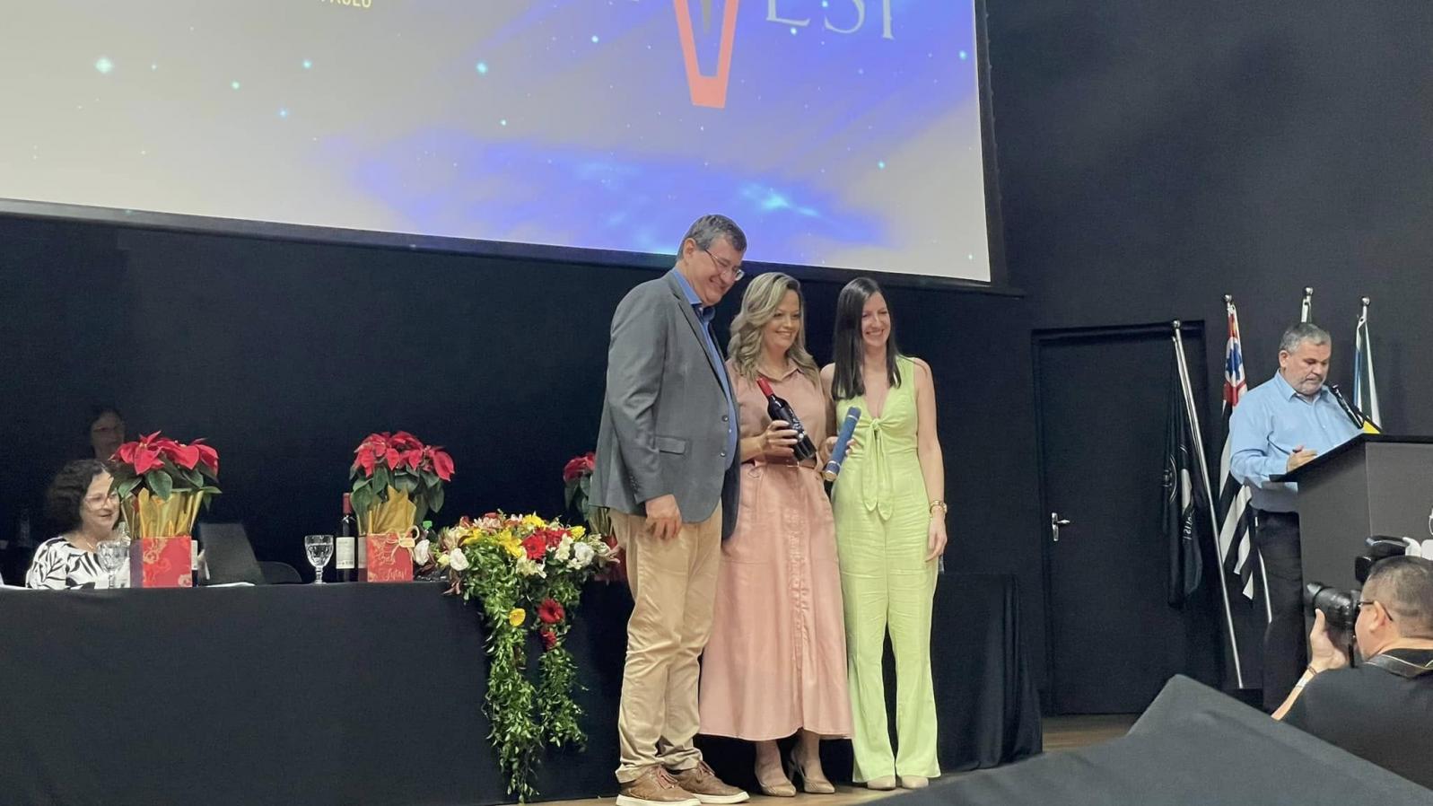 Cordeirópolis, Adinan Ortolan, a primeira-dama e secretária da Educação, Angelita Ortolan, a vice-prefeita, Fátima Celin, a coordenadora do Ensino Superior, Luiziana Gonzaga, e demais secretários e representante do Legislativo.