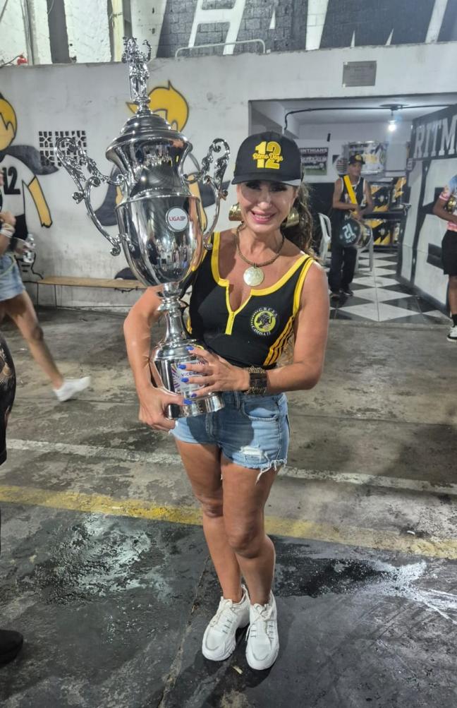 Vanessa Aggio, Rainha de Bateria da escola de samba Camisa 12, foi pé quente, além de ter sido um dos grandes destaques do desfile de 2025 no Grupo de Acesso II do