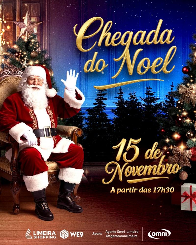 Limeira Shopping. No próximo dia 15 de novembro, sábado, Papai Noel chega para a alegria de todas as famílias. O momento marca o início da programação do Limeira Shopping e, para deixar a data ainda mais inesquecível, o Bom Velhinho chegará debaixo de “neve”. "Venha viver toda magia do Natal em uma experiência única", convida o shopping.
