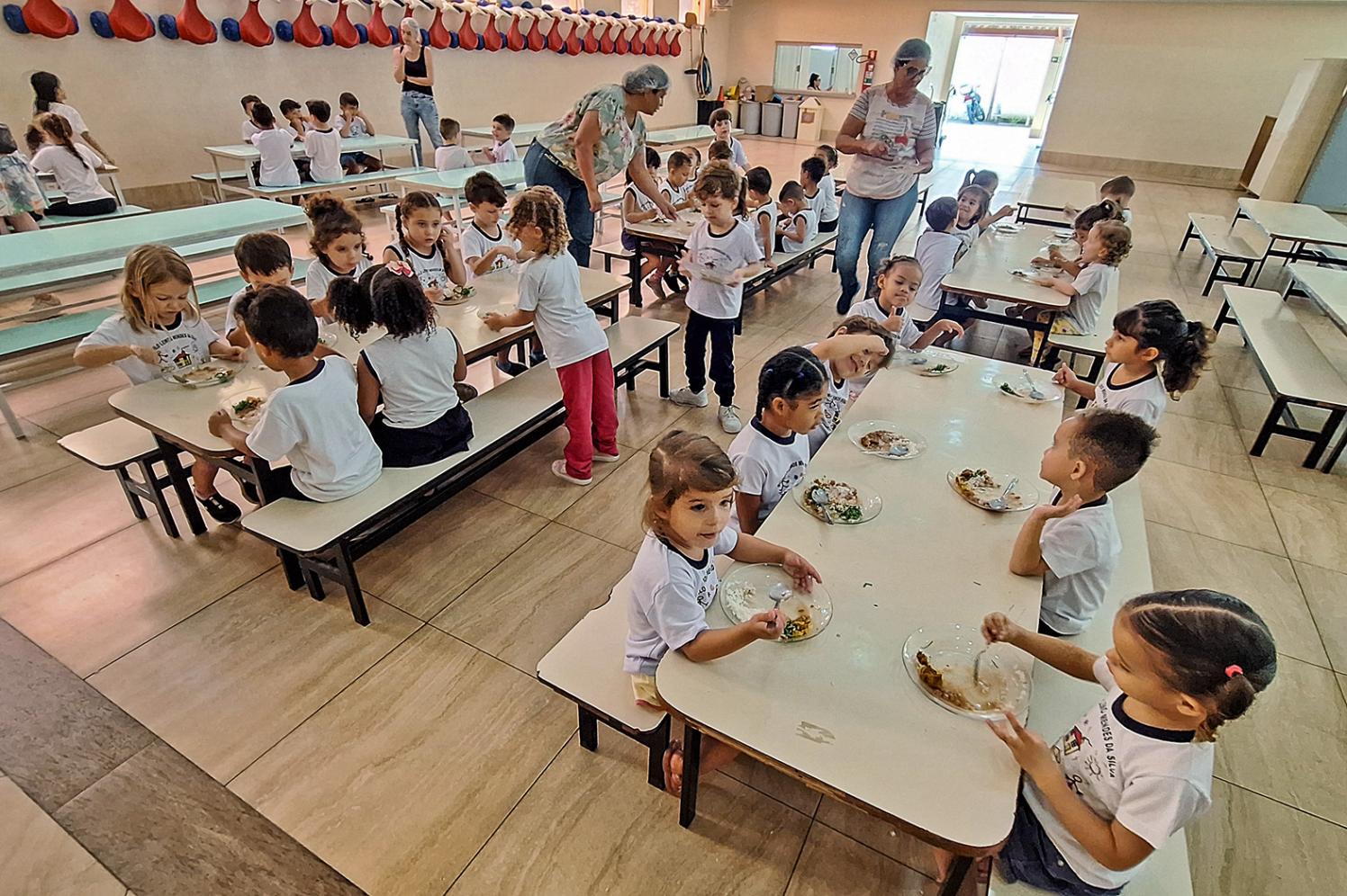 Nesta quarta-feira (18), por exemplo, o cardápio servido no Centro Infantil Murilo Lemos Mendes da Silva incluiu arroz, feijão, bife acebolado e couve refogada, combinação que demonstra a oferta de refeições completas e equilibradas aos estudantes. A unidade atende 162 crianças com idades entre 11 meses e seis anos. No local, a alimentação é servida em pratos de vidro e com talheres de metal, o que contribui para melhores condições de higiene e durabilidade dos utensílios.